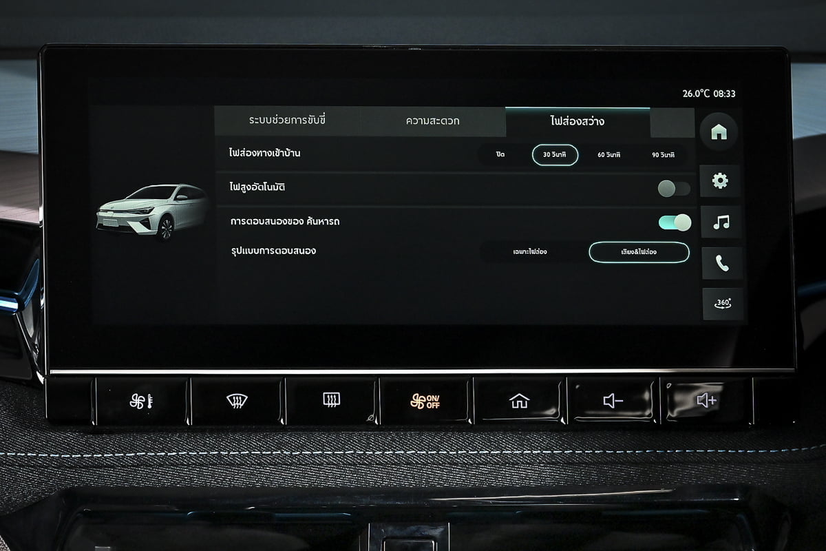 - หน้าจอแสดงผลอัจฉริยะแบบดิจิตอลขนาด 7 นิ้ว (Digital Multi-function Display) และหน้าจอสีระบบสัมผัสขนาด 25 นิ้ว พร้อมลำโพง 6 จุด