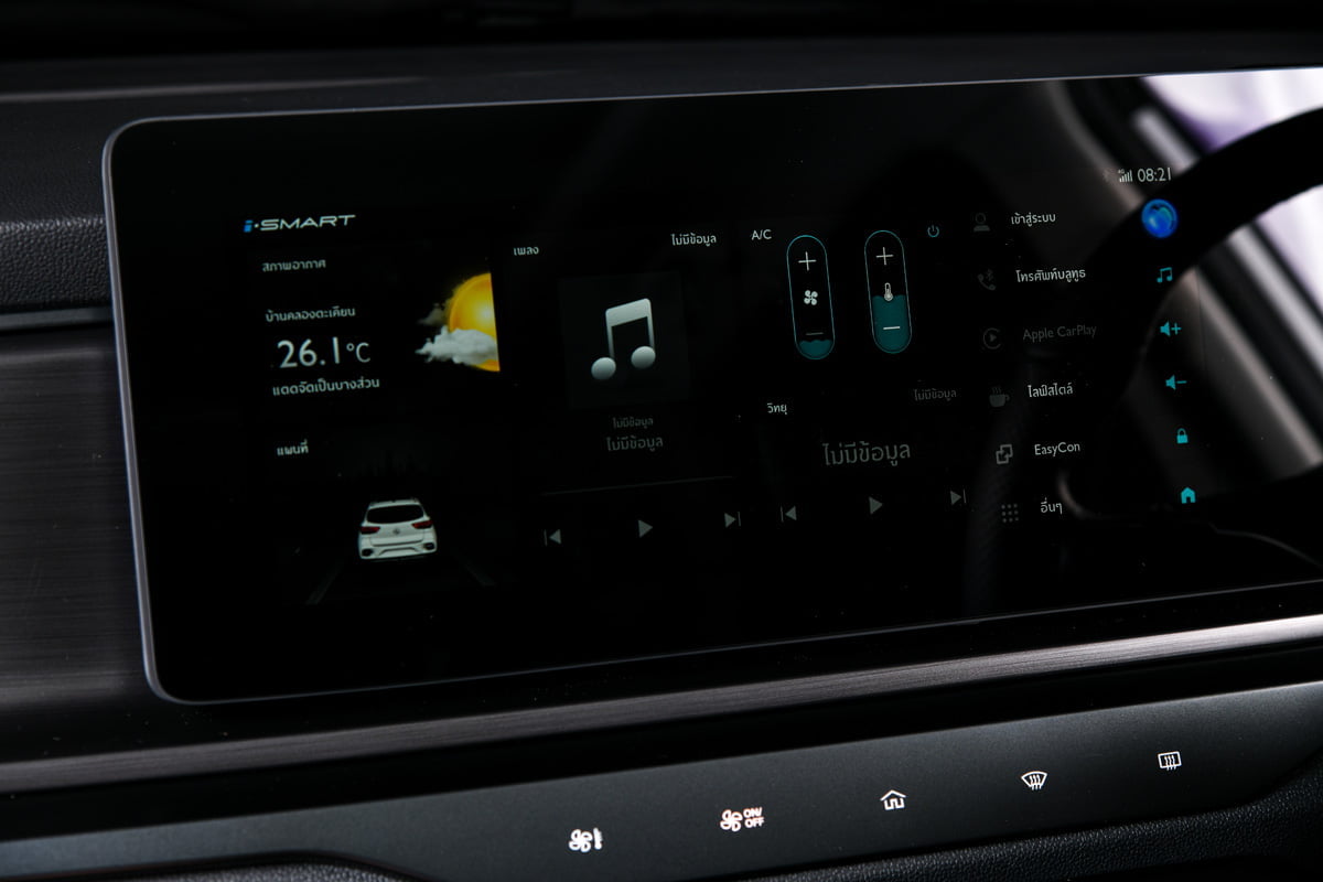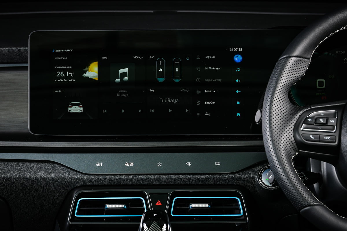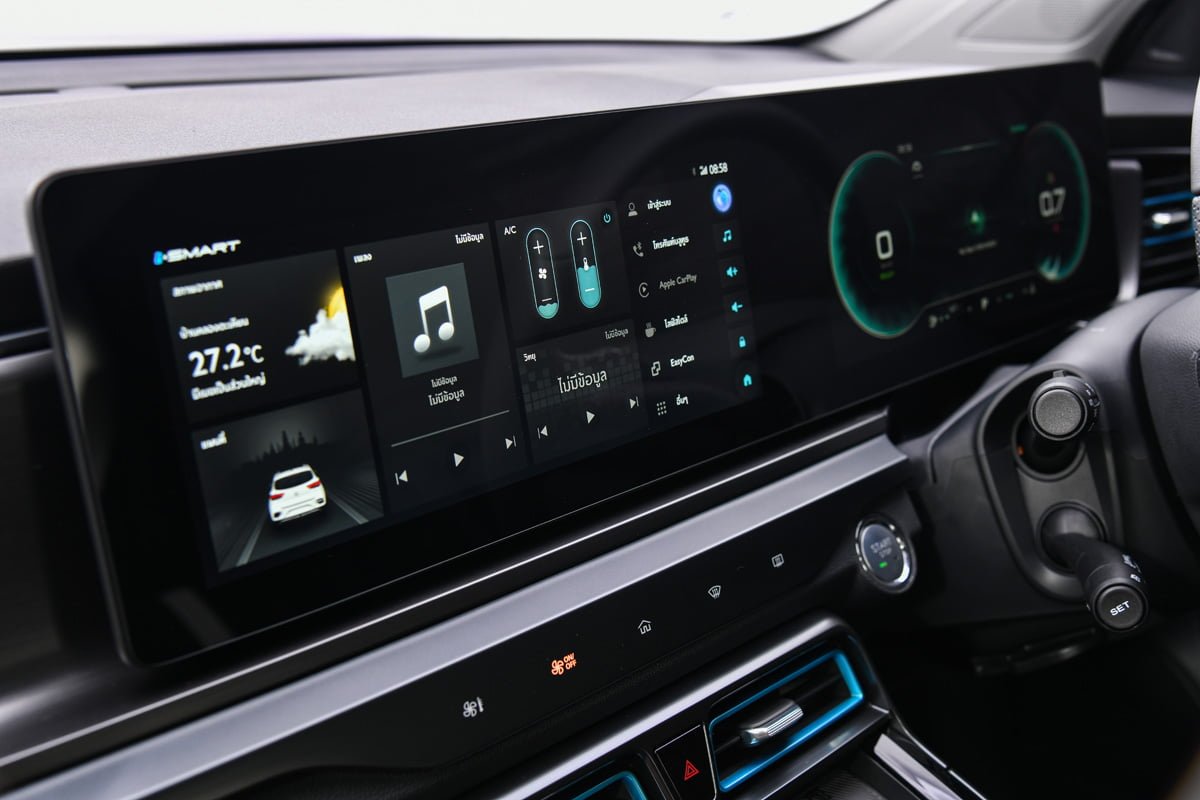 จอแสดงผลอัจฉริยะ Full Virtual Dashboard ความคมชัดระดับ HD ขนาด 12.3 นิ้ว แสดงผลได้อย่างหลากหลาย และโหมด Navigation แสดงการนำทาง คู่กับหน้าจอแบบ Touch Screen ขนาด 12.3 นิ้ว ที่สามารถเชื่อมต่อด้วยระบบปฏิบัติการอัจฉริยะ i-SMART พร้อม Apple CarPlay และสามารถเล่นมัลติมีเดียในสมาร์ทโฟนระบบ Android ได้ มอบความบันเทิง ตลอดการเดินทางด้วย Music application ของ JOOX อีกทั้งสามารถระบบเชื่อมต่อโทรศัพท์มือถือผ่านบลูทูธ และมาพร้อมลำโพง 6 ตำแหน่ง นอกจากนี้ยังมีพวงมาลัยมัลติฟังก์ชัน ควบคุมเครื่องเสียงพร้อมปุ่มรับ – วางสายโทรศัพท์ และช่องเชื่อมต่อ USB โดยเป็น Type C 1 ตำแหน่ง และ Type A 3 ตำแหน่ง