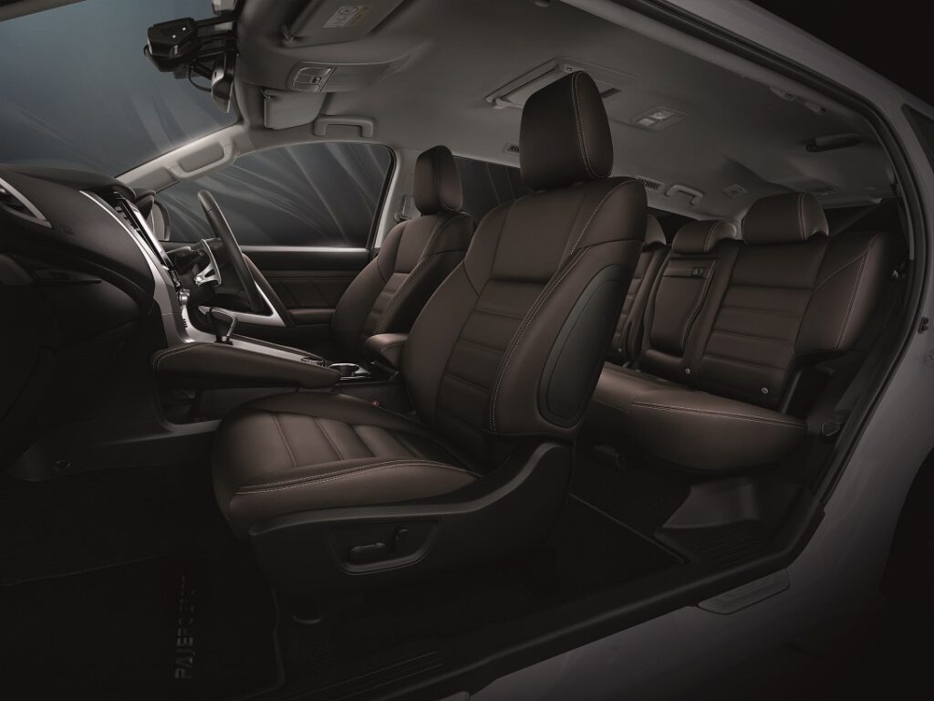 ห้องโดยสารของ Pajero Sport Elite Edition ใหม่ ยกระดับความหรูหราและความสะดวกสบายด้วยเบาะนั่งสีน้ำตาล ‘QUOLE MODURE’ ที่มีคุณสมบัติพิเศษช่วยสะท้อนความร้อนจากแสงแดด แผงข้างประตูและคอนโซลกลางบุด้วยวัสดุนุ่มสีน้ำตาล พร้อมสัญลักษณ์ ‘PAJERO SPORT’ เหนือกล่องเก็บของด้านหน้าฝั่งผู้โดยสาร และยังมีฝาครอบสเตนเลสพร้อมไฟ LED, พรมห้องโดยสารปักโลโก้ ‘PAJERO SPORT’ และกล้องบันทึกภาพหน้ารถ DVR (Digital VDO Recorder) มาเป็นมาตรฐาน