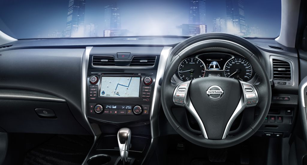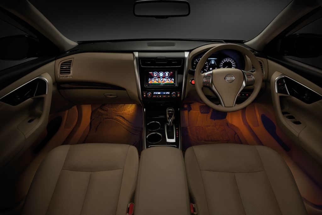 ภายในห้องโดยสารของ Teana ใหม่ มีให้เลือก 2 สี คือ โทนสีดำตกแต่งด้วยเมทัลลิก และโทนสีเบจเสริมด้วยลายไม้ โดดเด่นด้วยพื้นที่ใช้สอยที่กว้างขวาง มาพร้อมชุดหน้าปัดติดตั้งจอ 3 มิติ พร้อมระบบควบคุมหน้าจอ เครื่องเสียง บลูทูธ และปุ่ม Cruise Control บนพวงมาลัย