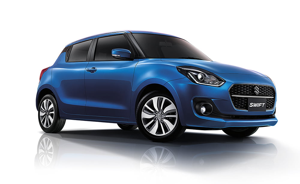 NEW SUZUKI SWIFT มีให้เลือกทั้งหมด 6 สี ได้แก่ สีน้ำเงิน Speedy Blue Metallic (ZYH), สีแดง Ablaze Red Pearl (ZTW), สีขาว Pure White Pearl (ZYG), สีเทา Star Silver Metallic (ZTS), สีเทา Mineral Gray Metallic (ZTU) และสีดำ Super Black Pearl (ZTT) มาใน 2 รุ่น ได้แก่ รุ่น GL ราคาเริ่มต้น 557,000 บาท และ รุ่น GLX ราคาเริ่มต้น 629,000 บาท