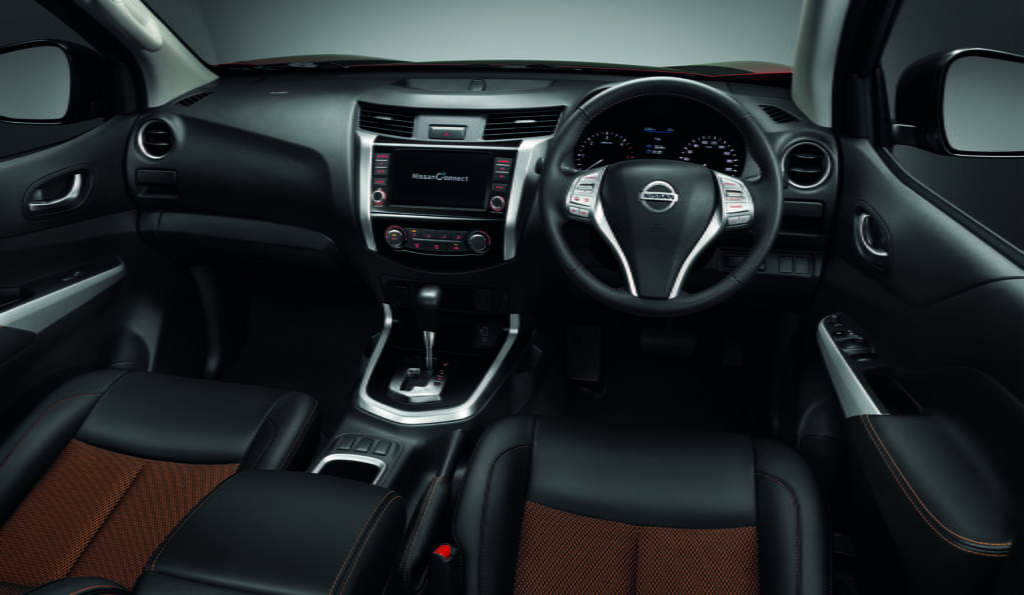 ภายในของ Navara Black Edition ใหม่มาพร้อมกับสีสันแบบทูโทน ด้วยเบาะหนังสีดำพร้อมเดินตะเข็บเบาะและพวงมาลัยด้วยด้ายสีส้ม ในขณะที่หัวเกียร์และแผงประตูหุ้มด้วยหนังแท้ ยิ่งกว่านั้นยังมีหน้าจอแสดงผลการขับขี่ที่ช่วยให้ผู้ขับขี่สามารถตรวจสอบความเร็วและอัตราการบริโภคน้ำมัน