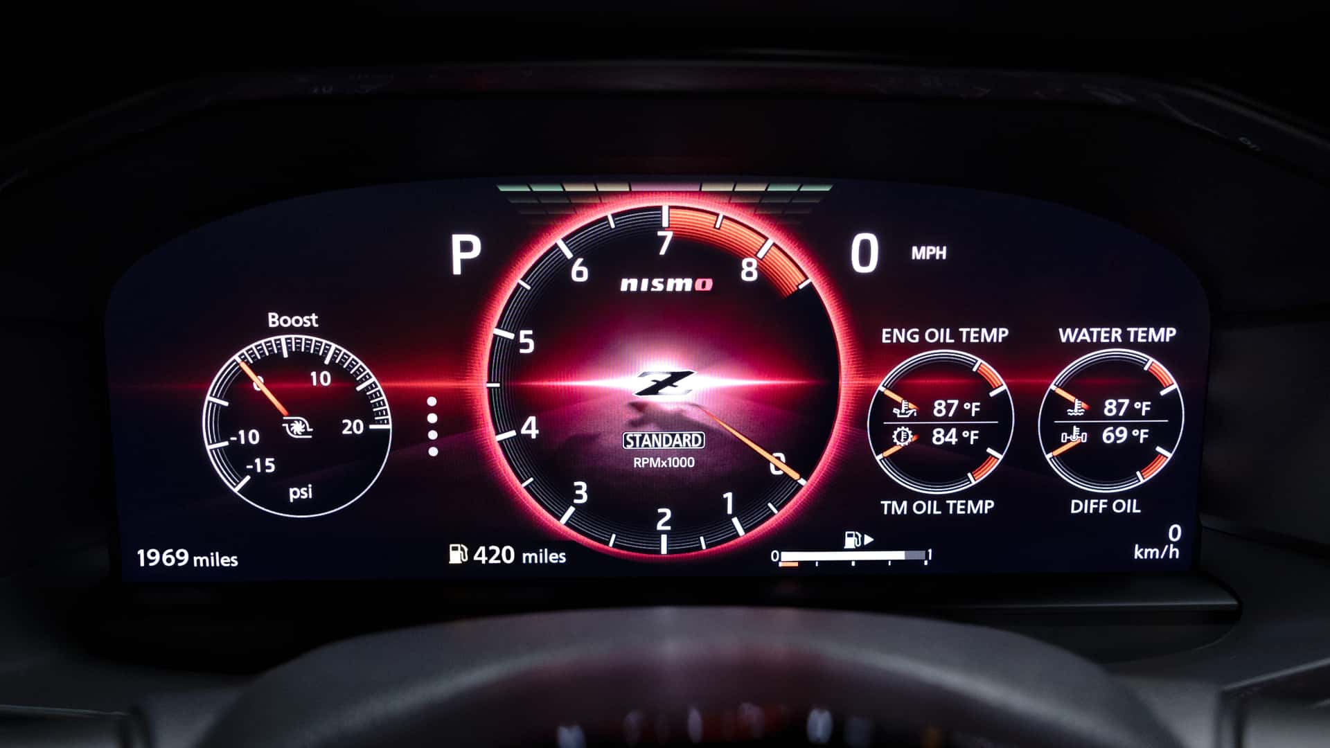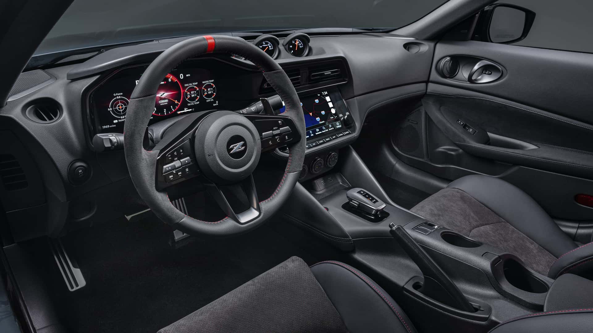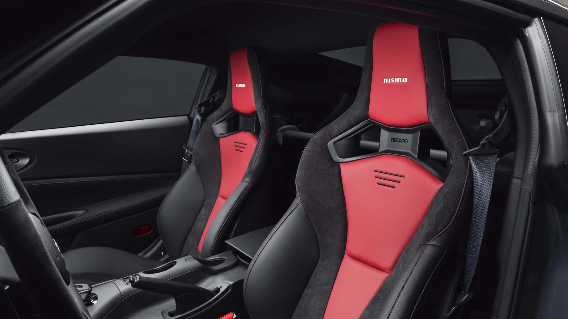 เพื่อช่วยจัดการการอัพเกรดเหล่านี้ Nissan ได้เพิ่มโหมดการขับขี่ Sport + ใหม่ที่ออกแบบมาเพื่อช่วยให้ผู้ขับขี่ใช้เวลาในสนามได้อย่างคุ้มค่าที่สุด โปรแกรมเปลี่ยนเกียร์มีการเปลี่ยนแปลง เหนือสิ่งอื่นใด เบาะนั่ง Recaro ช่วยให้คนขับและผู้โดยสารอยู่กับที่ เมื่อไม่ได้อยู่ในสนามแข่ง ภาพเคลื่อนไหวแบบเฉพาะของ Nismo สำหรับจอแสดงผลดิจิตอลและขอบสีแดงมากมายทำให้ภายในห้องโดยสารมีกลิ่นอายของความเป็นสปอร์ตอย่างเหมาะสม ภายนอก Nissan Z Nismo มีให้เลือก 5 สี ได้แก่ Passion Red TriCoat, Brilliant Silver, Black Diamond Pearl, Everest White Pearl TriCoat และ Stealth Grey ซึ่งเป็นเฉดสีพิเศษเฉพาะของ Nismo