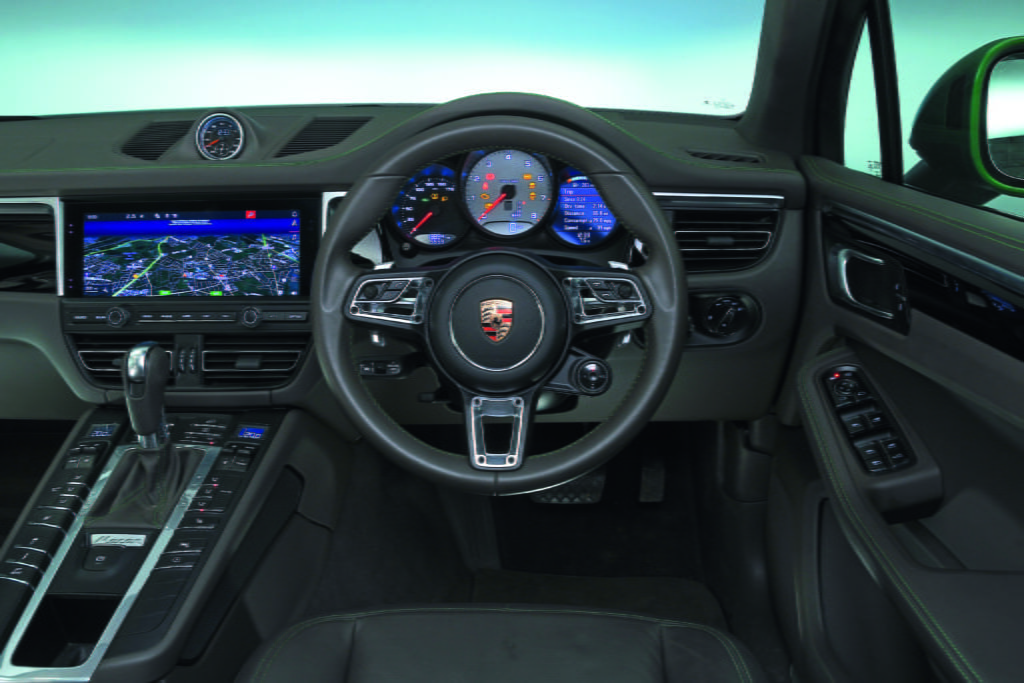 พวงมาลัยของทั้ง 2 สามารถปรับได้ด้วยระบบแมนวล พื้นที่วางเท้าของ Macan ค่อนข้างเล็ก คันเร่งอยู่ค่อนไปทางขวา การถอยหลังค่อนข้างลำบาก เพราะขอบกระจกด้านหลังบังทำให้วิสัยทัศน์การมองน้อยลง รถยนต์ทั้ง 2 รุ่นมาพร้อมกับเซนเซอร์ช่วยจอดทั้งด้านหน้าด้านหลัง ติดตั้งกล้องมองหลังเพิ่มได้ในราคา 884 ปอนด์ หรือ 44,200 บาท ให้ Macan และ 1,002 ปอนด์ หรือ 50,100 บาท ให้กับ Cayenne