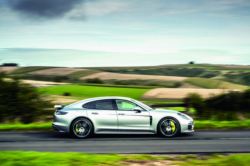 เปิดตัวมาด้วยความว่องไวกระฉับกระเฉงไม่เทอะทะเหมือนกับขนาดตัวถัง รวมไปถึงการเลี้ยวที่ไร้การถูกโยนตัว รถมีน้ำหนักมากขึ้นด้วยขนาดของแบตเตอรี่ที่ถูกจัดเก็บไว้อย่างเป็นระเบียบ Panamera โดดเด่นทุกการขยับตัวแม้กระทั่งบนถนนที่มีความคดเคี้ยว อย่างไรก็ตามหลายคนลงความเห็นว่า BMW M8 Grand Coupé และ Mercedes-AMG GT 4 ประตูมีการเลี้ยวเฉียบคม ขับขี่สนุกกว่าอยู่ดี