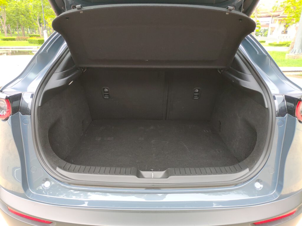 ด้านความอเนกประสงค์ CX-30 มาพร้อมห้องเก็บสัมภาระท้ายขนาดใหญ่กว่า Mazda 3 สามารถใส่กระเป๋าเดินทางใบใหญ่ได้หลายใน พื้นห้องยังไม่ราบเสมอขอบกันชน เบาะแถว 2 พับแยกแบบ 60/40 เมื่อเทียบกับคู่แข่งอย่าง Corolla Cross แล้ว CX-30 ยังเป็นรองอยู่นิดๆ