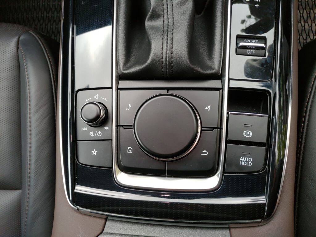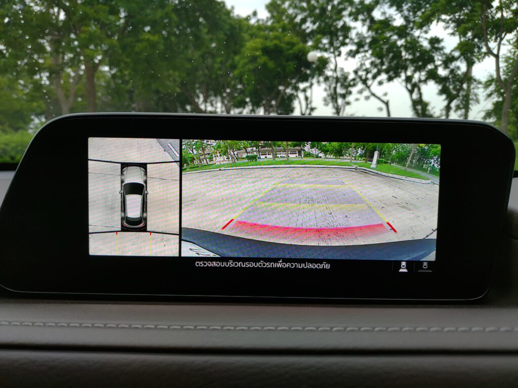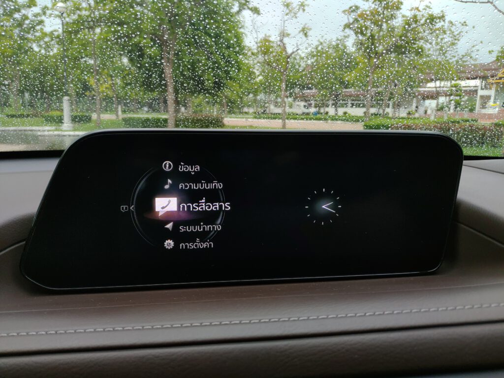 มาสด้าให้ความสำคัญกับบรรยากาศภายในห้องโดยสารมาก เห็นได้จากการออกแบบแดชบอร์ดให้ดูเรียบโล่งในสไตล์มินิมอล แต่แฝงด้วยความพรีเมี่ยมจากหนังบุนุ่ม หน้าจอกลางแบบลอยตัวขนาด 8.8 นิ้ว ตั้งอยู่ในระดับสายตา จอนี้แสดงภาพได้สวยงามคมชัด หน้าตาเมนูต่างๆ ดูง่ายแถมเป็นภาษาไทยด้วย ควบคุมการใช้งานผ่านแป้นหมุน Center Commander ที่คอนโซลกลางซึ่งถือว่าสะดวกมากเมื่อใช้งานขณะกำลังขับรถไปด้วย การตอบสนองของระบบสาระบันเทิงค่อนข้างลื่นไหล ฟังก์ชั่นใช้งานต่างๆ ครบครันตามสมัยนิยม รองรับการเชื่อมบลูทูธ Apple Carplay ทีเด็ดคือระบบเสียง Bose ลำโพง 12 ตำแหน่งที่ทุกคนพูดเหมือนกันว่าคุณภาพเสียงดีที่สุดในบรรดารถญี่ปุ่นที่วางขายในเมืองไทย การฟังเพลงโปรดระหว่างขับรถด้วยชุดเครื่องเสียงดีๆ ถือเป็นความสุขอีกอย่างหนึ่ง มันทำให้คุณเพลิดเพลิน ใจเย็นลง อุบัติเหตุก็จะลดลงตามไปด้วย