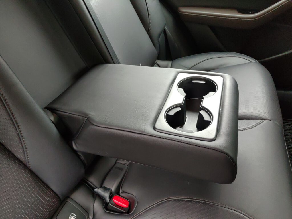 พื้นที่เบาะหน้ามีเพียงพอกับคนตัวสูง 180 ซม. เบาะหลังรู้สึกได้เลยว่านั่งสบายขึ้นกว่า Mazda 3 ชัดเจน ถ้าคนตัวสูงมานั่งจะมีพื้นที่ช่วงศีรษะและช่วงขาเยอะขึ้น นั่งทางไกลนานๆ แล้วสบายตัว เบาะก็มีความนุ่ม พนักพิงเอนกำลังได้องศา เบาะตัวกลางดึงลงว่าเป็นที่วางแขนพร้อมช่องวางแก้วน้ำ อุโมงค์กลางไม่ใหญ่จนรู้สึกว่าเกะกะ มีช่องแอร์ด้านหลังให้ความเย็นได้แบบทั่วถึง