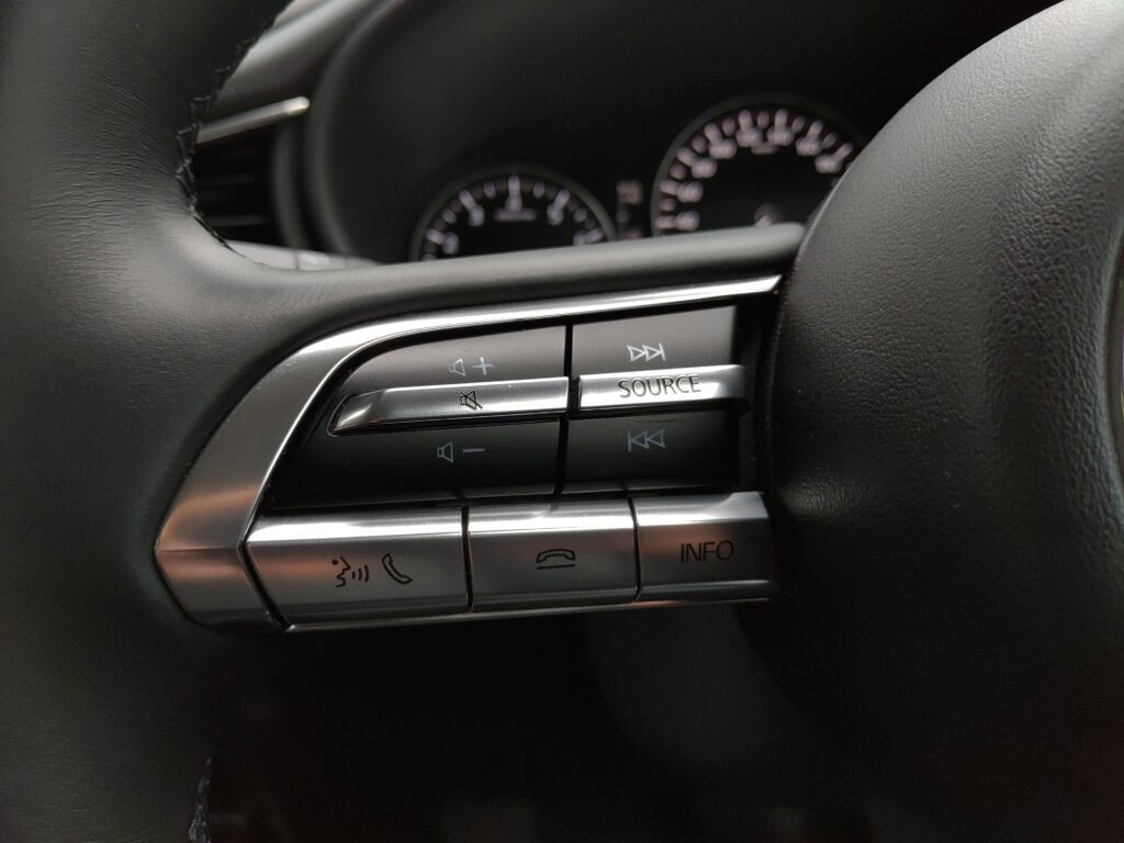 ที่ความเร็วต่ำพวงมาลัยของ Mazda CX-30 เบาแต่ยังมีแรงขืนพร้อมดีดกลับแฝงอยู่ ระยะฟรีมีไม่เยอะทำให้การตอบสนองของพวงมาลัยนั้นค่อนข้างไว แม่นยำ และเป็นธรรมชาติ พอใช้ความเร็วสูงขึ้นพวงมาลัยจะหนืดขึ้น นิ่ง แน่น ขับแล้วรู้สึกมั่นใจ ระยะฟรีมีพอเหมาะ การหักเข้าโค้งหน้ารถตอบสนองอย่างเป็นธรรมชาติ คาดเดาอาการได้ง่าย คม และแม่นยำ นี่คือพวงมาลัยที่ขับแล้วรู้สึกชอบ มันเหมาะกับการขับลัดเลาะไปตามโค้งซ้าย-ขวา ขับช้าๆ ในเมืองอาจจะรู้สึกเฉยๆ แต่พอเอามาเล่นโค้งแล้วรู้สึกสนุกและมั่นใจขึ้นเยอะเลย
