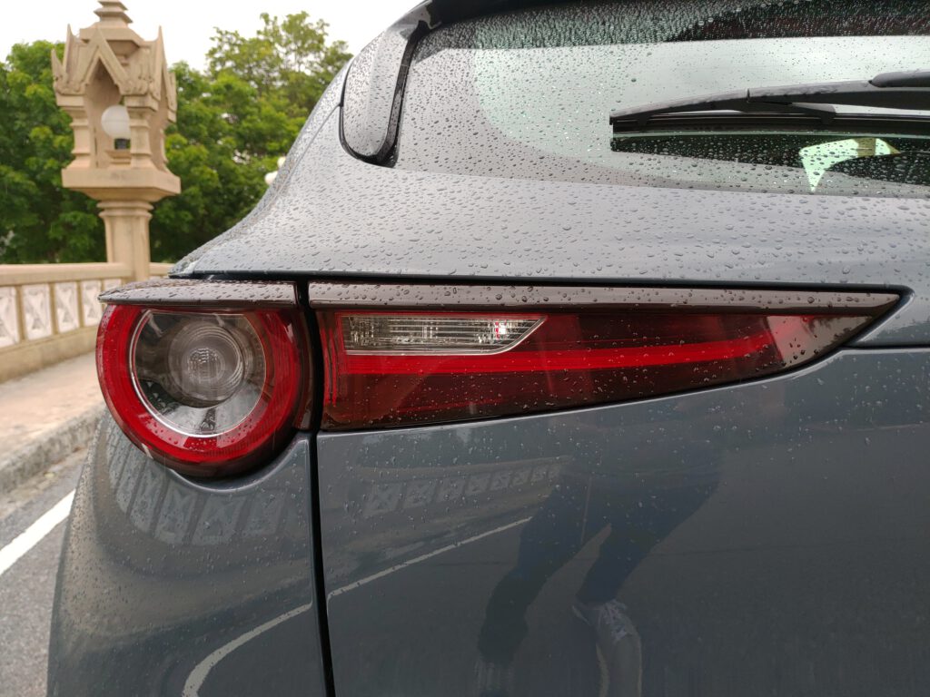 อีกสิ่งหนึ่งที่ช่วยให้เข้าโค้งได้อย่างสนุกและมั่นใจก็คือระบบ G-Vectoring Control PLUS ที่จะเพิ่มการเบรกหน้าซ้าย/ขวาเพื่อดึงหน้ารถให้เข้าทิศทางได้เร็วขึ้น โดยเฉพาะเส้นทางคนเคี้ยวบนเขาที่เจ้า CX-30 ไม่ทำให้รู้สึกมึนหัวเลย เข้าโค้งได้อย่างสนุก รถไม่โยกเยก พวงมาลัยคมและตอบสนองไว มั่นใจ ปลอดภัย ถ้าเทียบกับ Mazda 3 ที่มีความสูงน้อยกว่าแล้ว รายนั้นจะให้ความสนุกได้มากกว่า คมและกระชับกว่า แต่ถ้าเทียบตามมาตรฐานครอสโอเวอร์ยกสูงที่มีในตลาดตอนนี้แล้วล่ะก็ CX-30 อยู่ในลำดับต้นๆ ในแง่การควบคุมอย่างอย่างไม่ต้องสงสัย