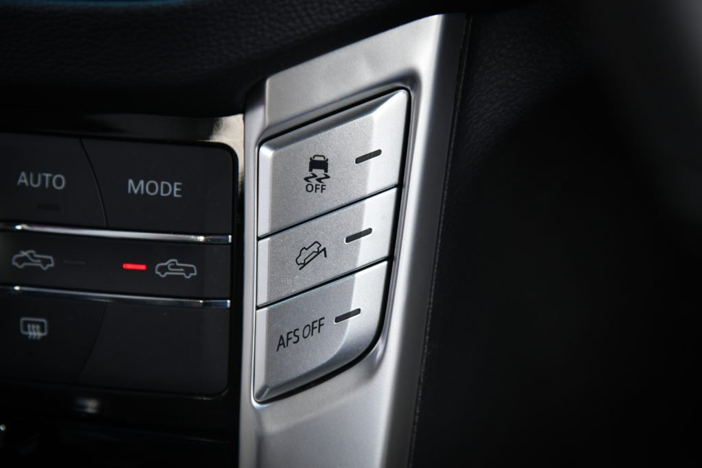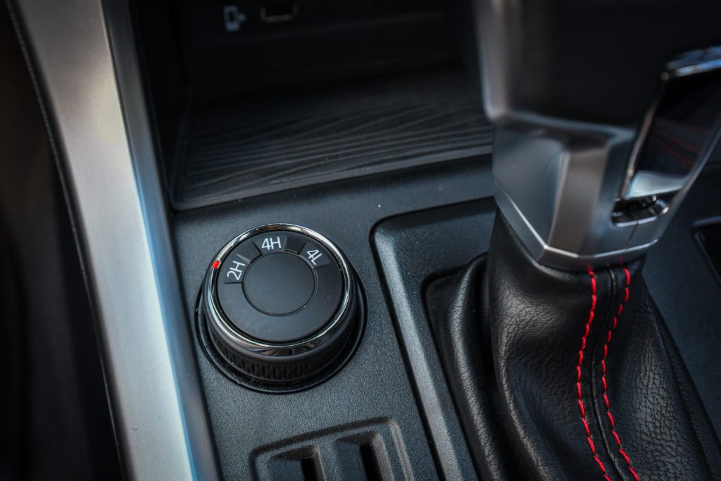 ปุ่มปรับระบบขับเคลื่อนสี่ล้อจะอยู่บริเวณใกล้กับคันเกียร์ สามารถเลือกได้ 3 โหมด คือ 2H 4H และ 4L นอกจากนี้ยังมีระบบล็อกเฟืองท้ายมาด้วย ช่วยให้ตะกุยทางโหดได้ดีขึ้น จุดที่เราชอบคือหัวเกียร์ที่ให้อารมณ์คล้ายรถ Audi