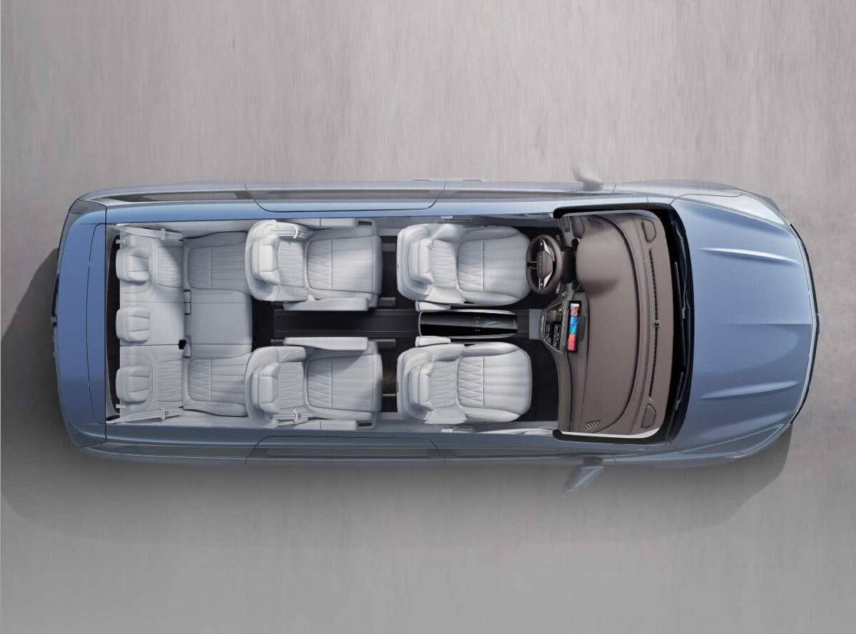 ห้องโดยสารสามารถรองรับผู้โดยสารได้ 7 คน และใช้รูปแบบที่นั่ง 2/2/3 เบาะนั่งทั้งหมดหุ้มด้วยหนัง Nappa ขณะที่เบาะแถวที่สองมีระบบนวด ระบบทำความร้อน ระบบระบายอากาศ และที่พักขาไฟฟ้า