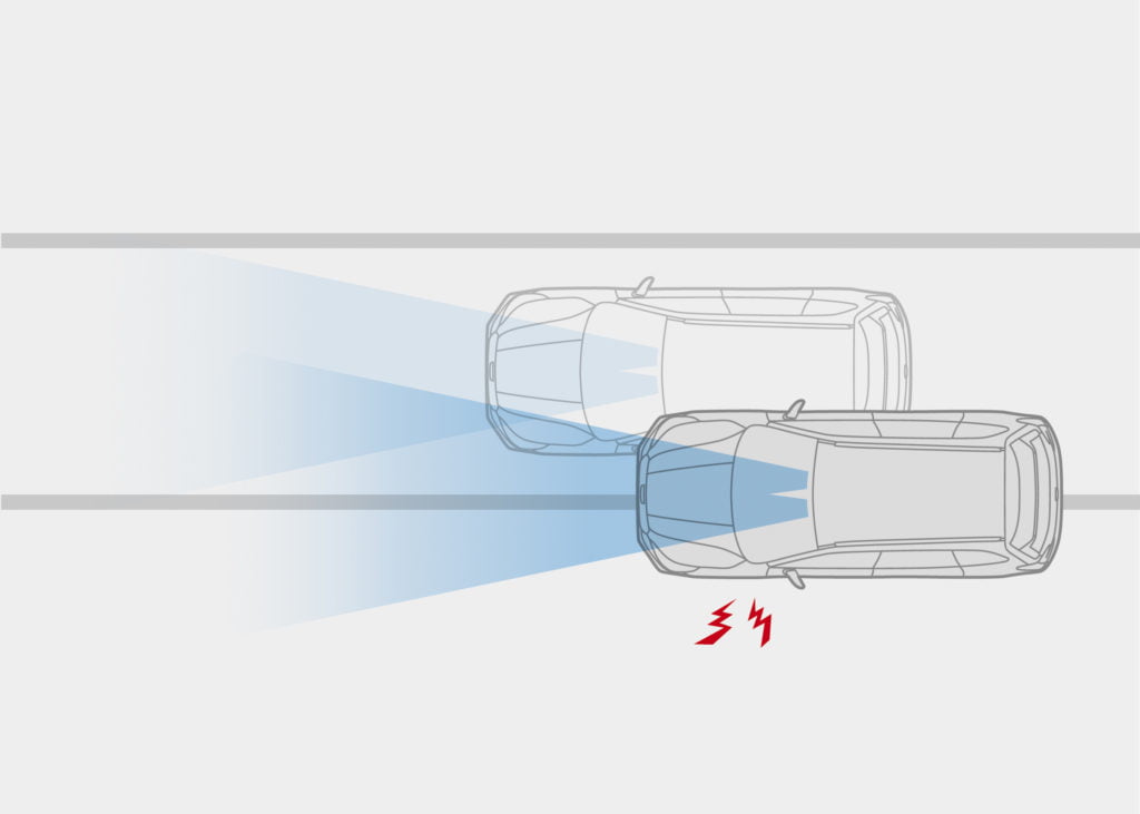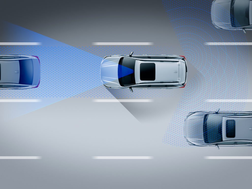 เริ่มทดสอบระบบ Adaptive Cruise Control ด้วยการขับเรียงแถวตามคันหน้า กดเซ็ตความเร็วไว้ที่ 30 กม./ชม. กดเว้นระยะห่างจากคันหน้าไว้ปานกลาง ความพิเศษของ Adaptive Cruise Control ในรถคันนี้ คือสามารถตั้งค่าล็อกความเร็วได้ตั้งแต่รถหยุดนิ่ง ซึ่งปกติแล้วเราจะทำได้ต่อเมื่อรถวิ่งอยู่ ซึ่งตรงนี้ดีมากๆ เมื่อตั้งค่าต่างๆ เสร็จแล้วก็แค่ปล่อยเบรก แตะคันเร่งเล็กน้อย จากนั้นรถจะเคลื่อนตัวตามคันหน้าและรักษาระยะห่างไว้โดยอัตโนมัติ ถ้าเกิดรถคันหน้าออกตัวไปแล้วและเราไม่กดคันเร่ง ระบบจะส่งเสียงเตือนเพื่อแจ้งให้ออกตัวตาม ระบบสามารถเร่งและเบรกได้อย่างนุ่มนวล เมื่อคันหน้าเบรกจนหยุดนิ่ง ระบบก็จะสั่งให้รถของเบรกตามจนหยุดนิ่งด้วยเช่นกันโดยที่เท้าไม่ต้องแตะแป้นเบรกเลย