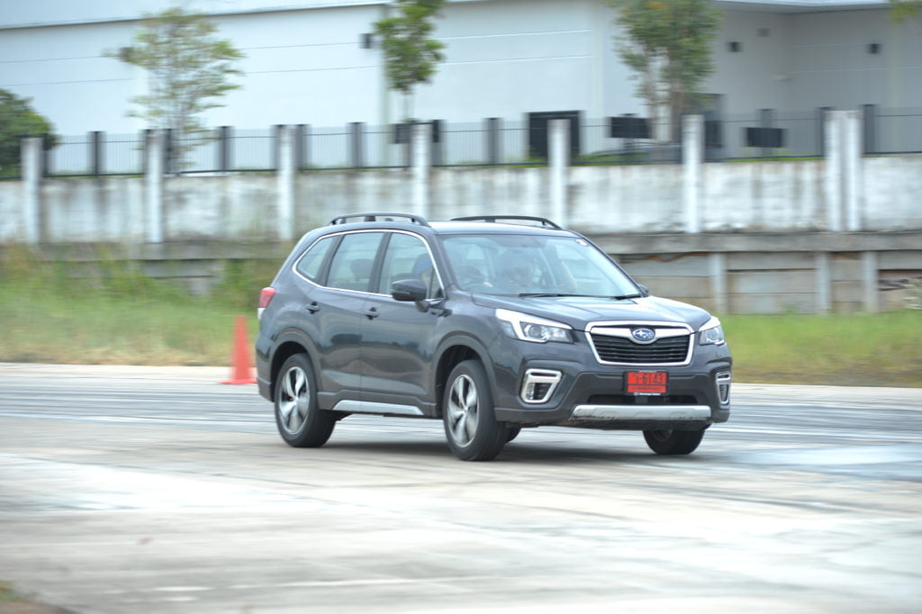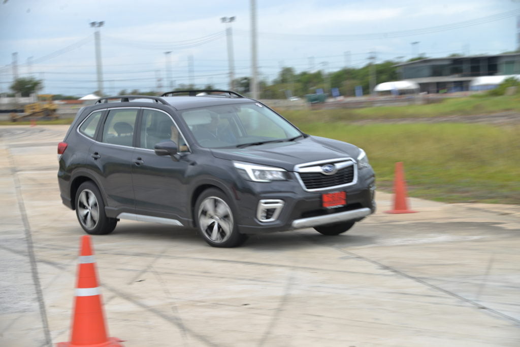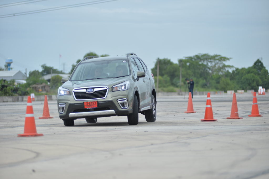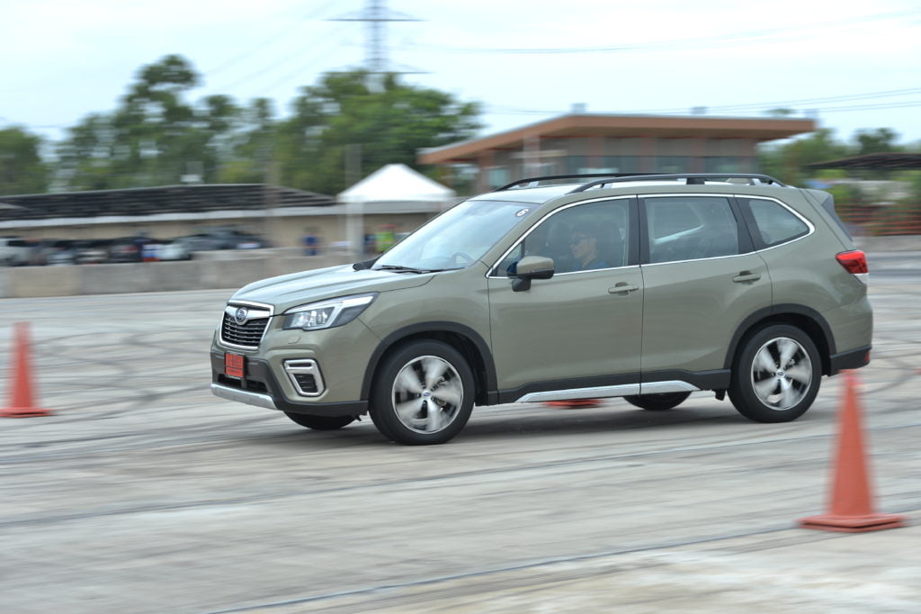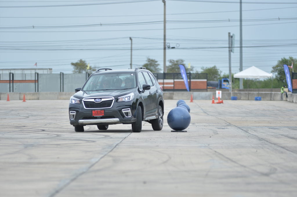 ปิดท้ายการทดสอบด้วยสถานี Slalom ขับซิกแซกซ้าย-ขวาดูการตอบสนองของพวงมาลัยและช่วงล่าง ด้วยจุดเด่นของเครื่องยนต์ Boxer สูบนอนที่มีจุดศูนย์ถ่วงต่ำ ประกอบกับระบบขับเคลื่อนสี่ล้อแบบสมมาตร และระบบ Active Torque Vectoring ทำให้การขับรถยกสูงอย่าง Forester ซิกแซกหลบสิ่งกิ่งขวางทำได้อย่างไม่ยากเย็น มันเป็นรถที่ควบคุมง่าย เฉียบคม อาการโยนมีไม่มาก ช่วงล่างตอบสนองดี ทั้งหมดนี้คือความมั่นใจที่จะช่วยให้การขับขี่จริงบนท้องถนนมีความปลอดภัยยิ่งขึ้น