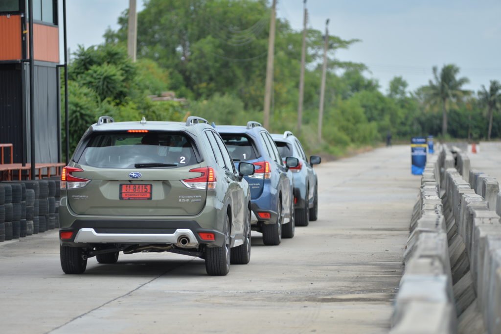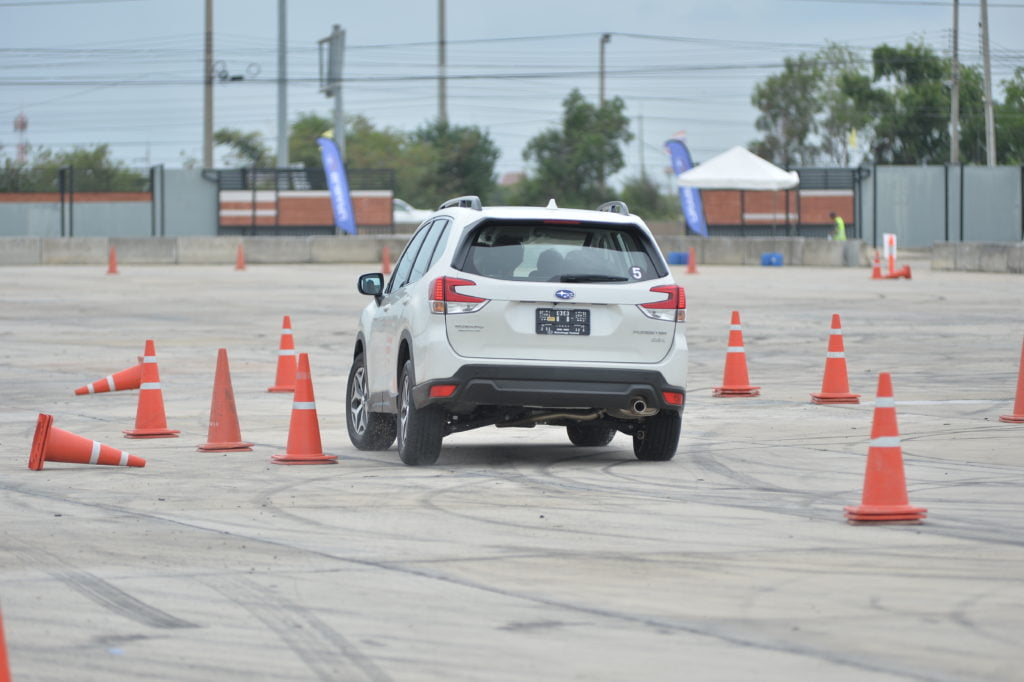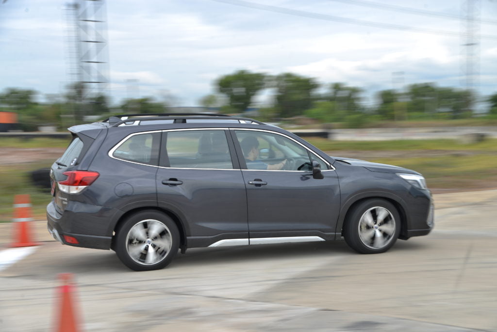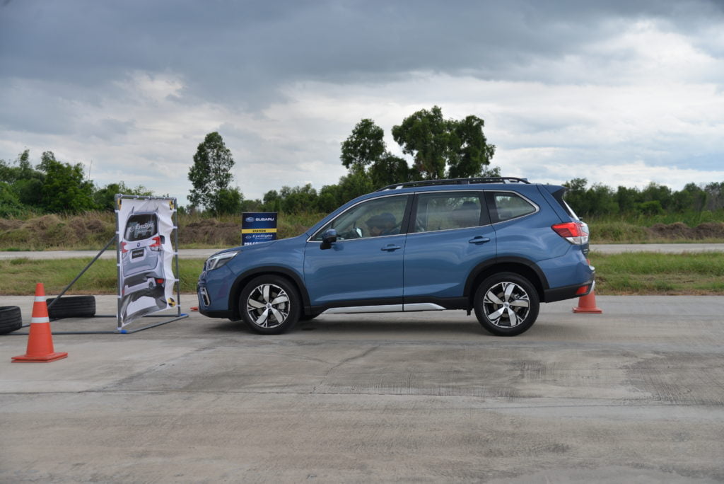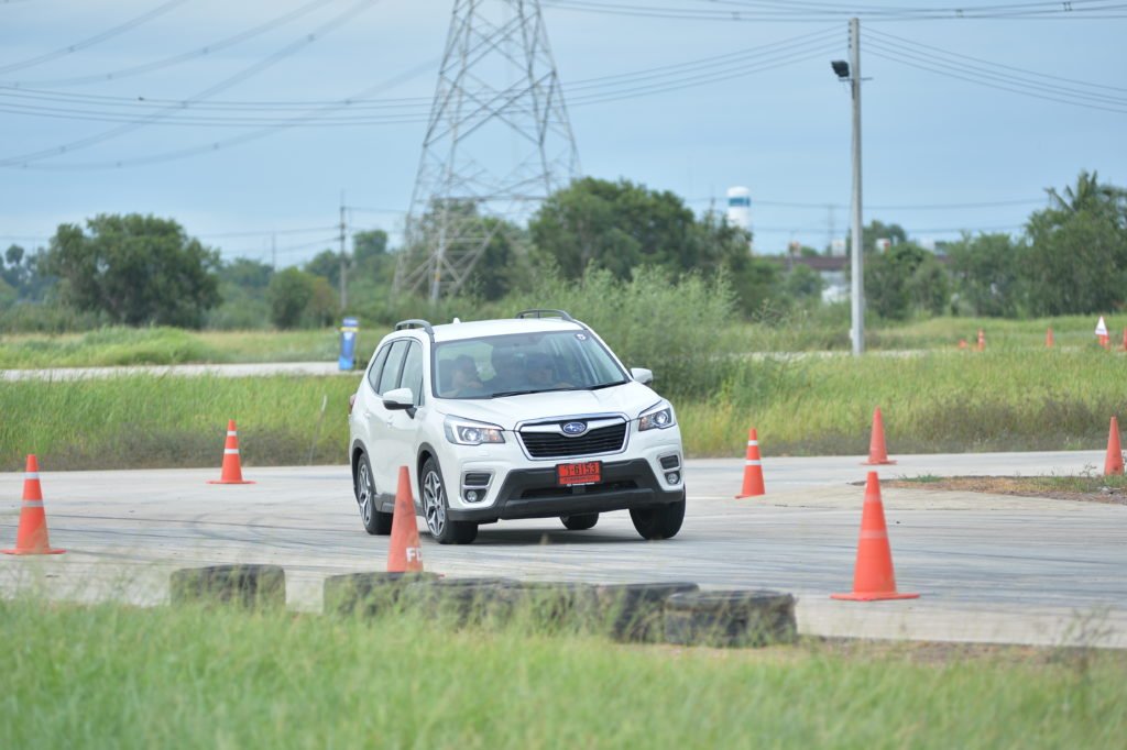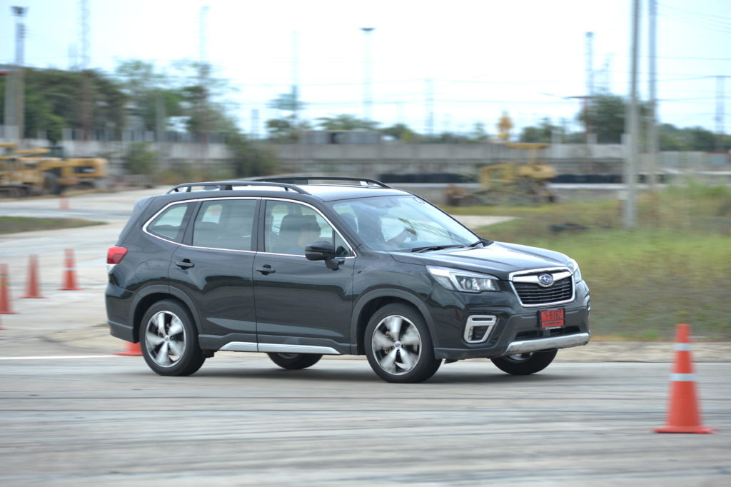 ปิดท้ายการทดสอบด้วยสถานี Slalom ขับซิกแซกซ้าย-ขวาดูการตอบสนองของพวงมาลัยและช่วงล่าง ด้วยจุดเด่นของเครื่องยนต์ Boxer สูบนอนที่มีจุดศูนย์ถ่วงต่ำ ประกอบกับระบบขับเคลื่อนสี่ล้อแบบสมมาตร และระบบ Active Torque Vectoring ทำให้การขับรถยกสูงอย่าง Forester ซิกแซกหลบสิ่งกิ่งขวางทำได้อย่างไม่ยากเย็น มันเป็นรถที่ควบคุมง่าย เฉียบคม อาการโยนมีไม่มาก ช่วงล่างตอบสนองดี ทั้งหมดนี้คือความมั่นใจที่จะช่วยให้การขับขี่จริงบนท้องถนนมีความปลอดภัยยิ่งขึ้น