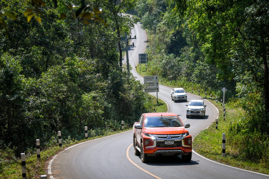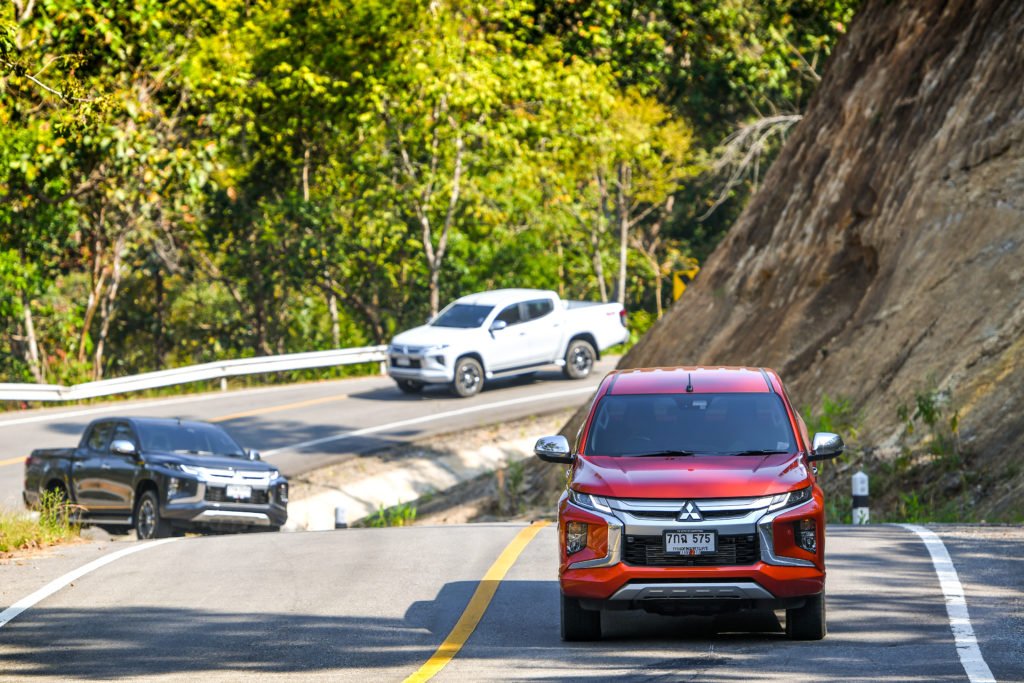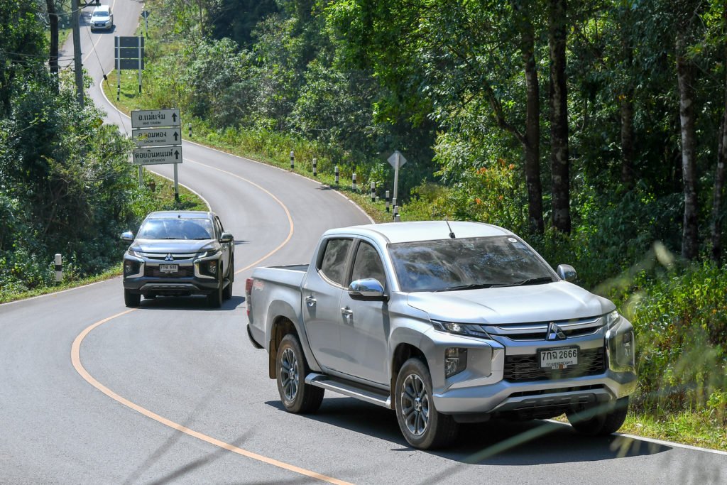 Triton รับมือกับโค้งมากมายบนดอยอินทนนท์ได้เป็นอย่างดี แม้ว่าจะเป็นรถยกสูงแต่ยังเกาะถนนดีมาก รถไม่เสียอาการเมื่อต้อเจอกับโค้งตัว S การทรงตัวในโค้งดี มีโยนบ้างตามสไตล์กระบะ พวงมาลัยตอบสนองต่อการบังคับได้ดี หน้ารถหันไปตามสั่งอย่างรวดเร็ว ขับแล้วไม่ล้ามากจนเกินไป