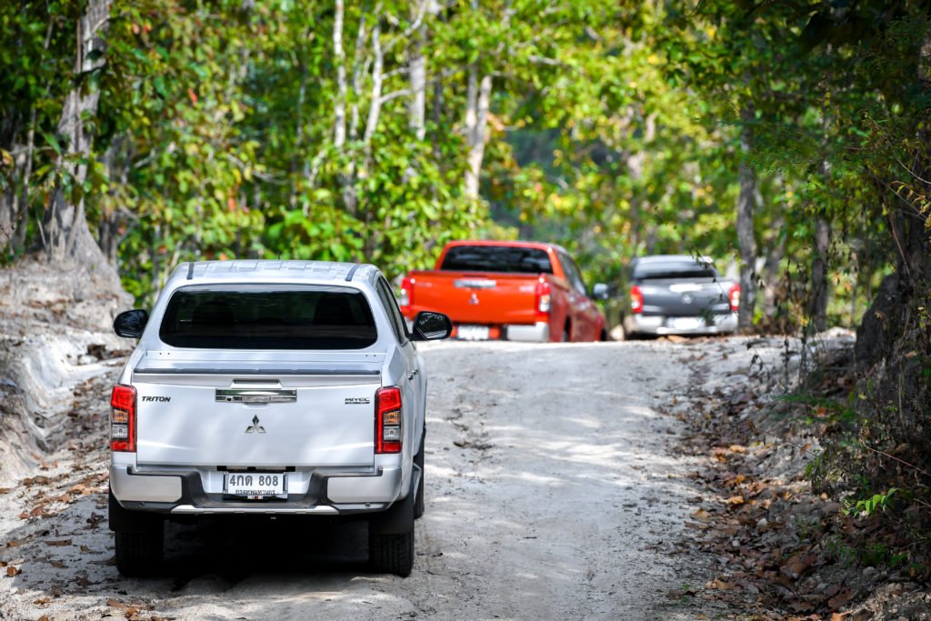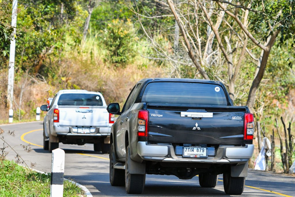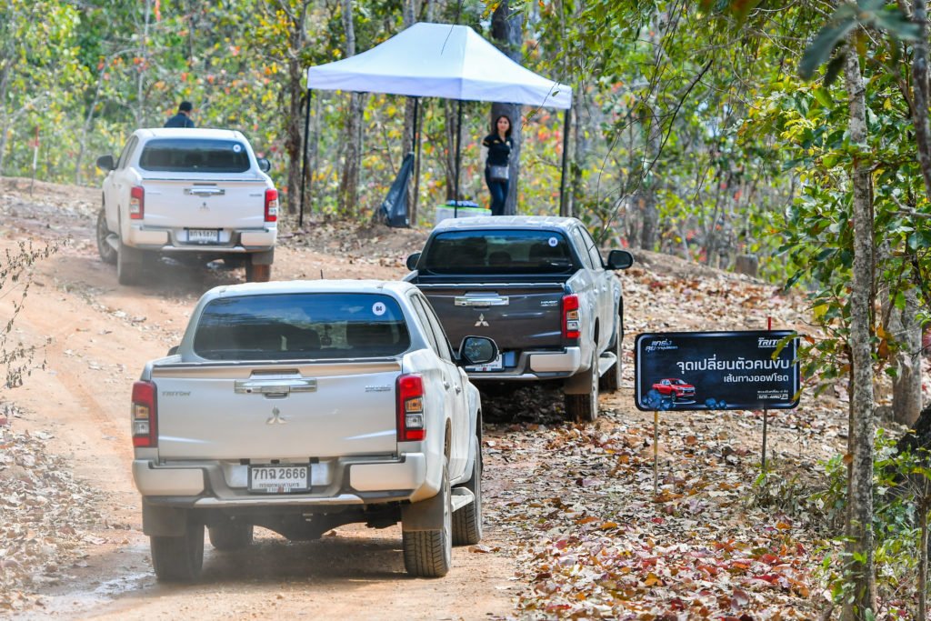 แน่นอนว่าจุดเด่นของ Triton คือความสามารถในการขับขี่ออฟโรด มิตซูบิชิจึงจัดเส้นทางออฟโรดให้ลุยกันฝุ่นตลบที่หน่วยจัดการต้นน้ำแม่จอนหลวง สภาพพื้นผิวเป็นดินแห้งผสมกรวด เส้นทางส่วนใหญ่ไม่ชันมาก ไม่ค่อยมีอุปสรรคให้ปีนป่าย ดังนั้นใช้ระบบขับเคลื่อน 4H และโหมด Gravel ก็เพียงพอแล้ว บางช่วงเป็นทางแคบ เราจึงได้ทดสอบระบบกล้องมองภาพรอบคันไปในตัวซึ่งมันช่วยได้จริงในจังหวะที่ต้องการความชัวร์ นอกจากนี้เรายังได้ทดสอบระบบควบคุมความเร็วขณะลงทางลาดชันซึ่งช่วยเพิ่มความอุ่นใจได้มากสำหรับผู้ที่ยังไม่ชำนาญ