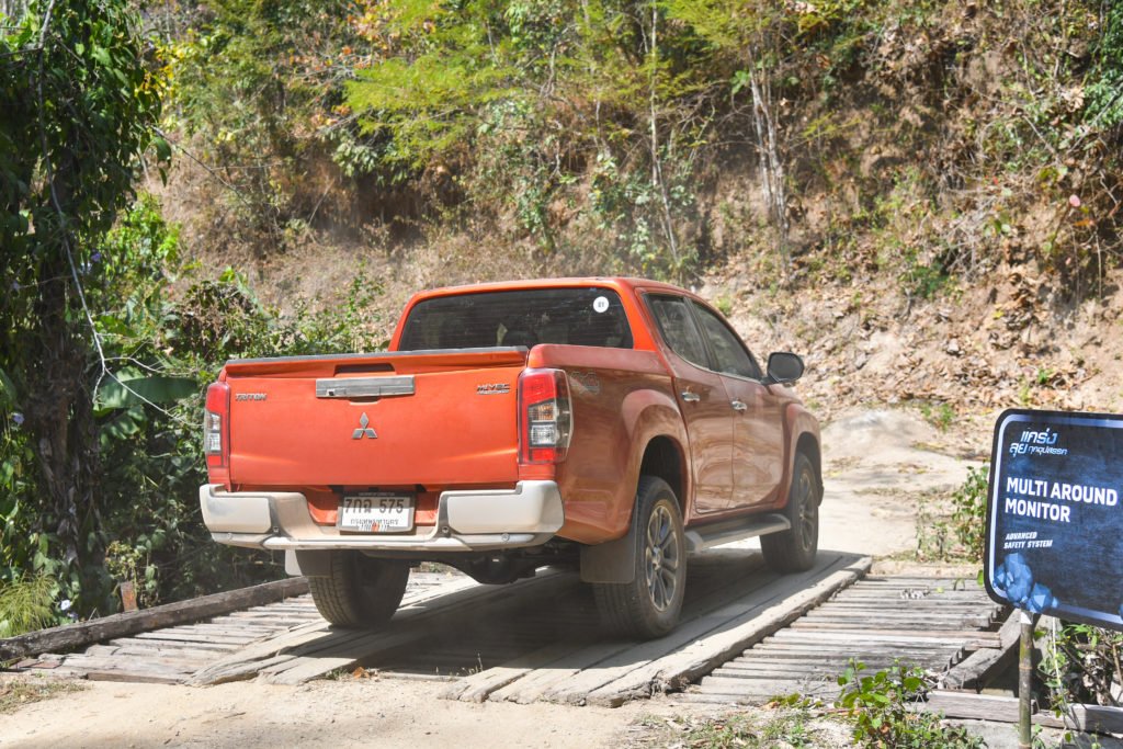 Triton ใหม่ได้อัพเกรดโช๊คอัพหลังให้ใหญ่ขึ้นทำให้รองรับแรงกระแทกได้ดีขึ้นเมื่อขับขี่เส้นทางออฟโรด จากการทดสอบพบว่ารถมีความนิ่งขึ้น โดดเด้งน้อยลงเมื่อเทียบกับรุ่นก่อนหน้า การเปลี่ยนมาเป็นระบบขับเคลื่อน 4 ล้อ พวงมาลัยยังตอบสนองได้ดี ควบคุมง่ายเหมือนขับบนถนนปกติ และเราไม่พบอาการลื่นไถลเลย ระบบเบรกยังคงไว้ใจได้เหมือนเดิม ขณะที่เครื่องยนต์ก็ไม่ได้รอบสูงมากนัก การขับเส้นทางช่วงนี้จึงเป็นไปอย่างราบรื่น