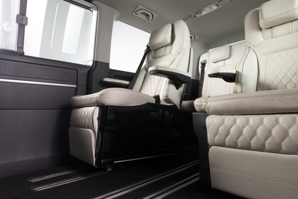 ภายในห้องโดยสารของ Thaiyarnyon Caravelle T69 ได้รับการตกแต่งและพัฒนาอย่างหรูหราพิถีพิถันด้วยวัสดุคุณภาพสูง ชุดเบาะนั่ง VIP คู่หน้าเป็นเบาะหนังแท้นำเข้าจากอิตาลี นั่งสบาย พร้อมที่รองน่องและที่วางเท้าในตัว ปรับเบาะได้อย่างง่ายดายด้วยระบบไฟฟ้า และที่วางแขนของเบาะ VIP สามารถปรับระดับสูง–ต่ำได้ตามความต้องการ รับน้ำหนักได้ถึง 100 กก. เพิ่มความสบายพร้อมรองรับทุกอิริยาบถในระหว่างการเดินทาง เบาะ Bench ด้านหลังปรับระดับเอนได้สะดวกสบายและง่ายดายด้วยปุ่มควบคุมบริเวณที่วางแขน สามารถพับราบเพื่อรองรับการเก็บสัมภาระได้มากขึ้น รวมถึงระบบพื้น Smart Floor ช่วยให้เบาะ VIP และเบาะ Bench ที่สามารถเลื่อนตำแหน่งของเบาะหน้า–หลังได้อย่างอิสระตามต้องการ