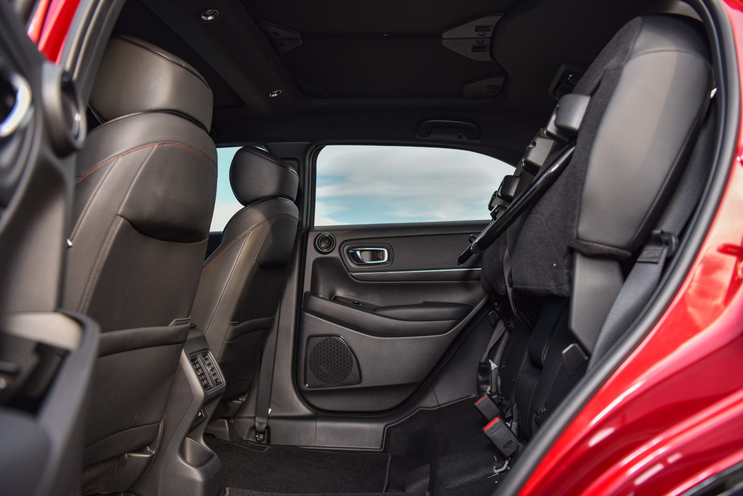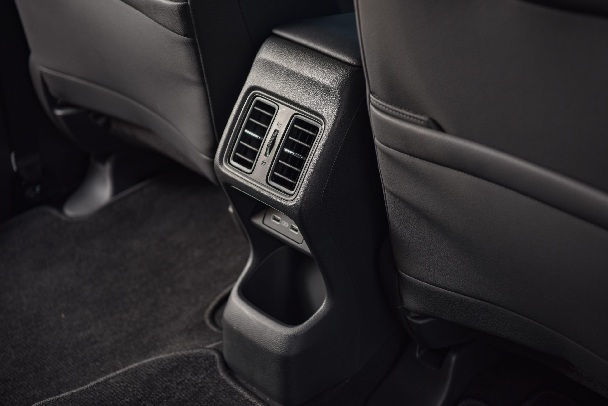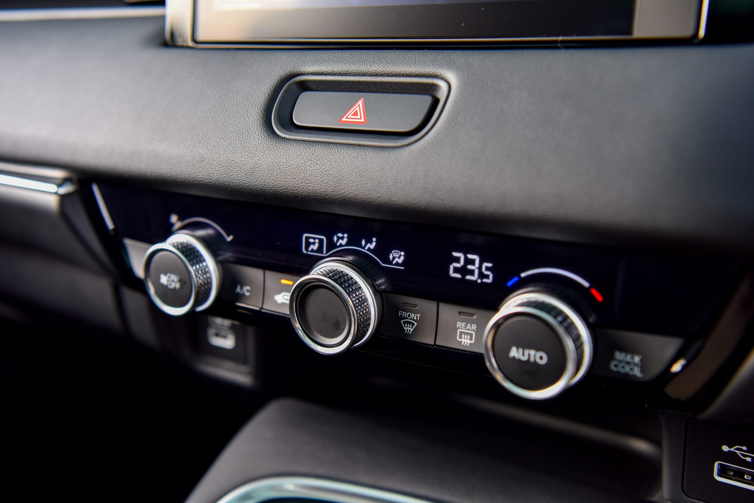 อีกฟีเจอร์หนึ่งก็คือระบบปรับอกาศของ Honda HR-V eHEV เป็นระบบ Air Diffusion System ตัวปรับองศาของลมแบบใหม่มี 2 ระดับ ปรับแบบหมุนให้ตรงและหมุนแบบให้กระจายเป็นลมโกรก หมุนเวียนอยู่รอบรถก็จะทำให้รถมีความเย็นที่ทั่วถึงและที่สำคัญคือแอร์ไม่ปะทะมือทำให้ไม่ต้องปรับองศาแอร์เลย แค่หมุน Diffusion ก็จบ ซึ่งเป็นแบบแยกอิสระซ้ายขวา ที่นั่งข้างคนขับก็มีเช่นกันซึ่งสามารถปรับได้ตามความต้องการและมาพร้อมด้วยช่องปรับอากาศตอนหลัง (เฉพาะรุ่น e:HEV EL และรุ่น e:HEV RS) จึงช่วยให้ภายในห้องโดยสารเย็นทั่วถึง แม้ว่าจะรู้สึกอุ่นที่ด้านบนหลังคาบ้างก็ตาม