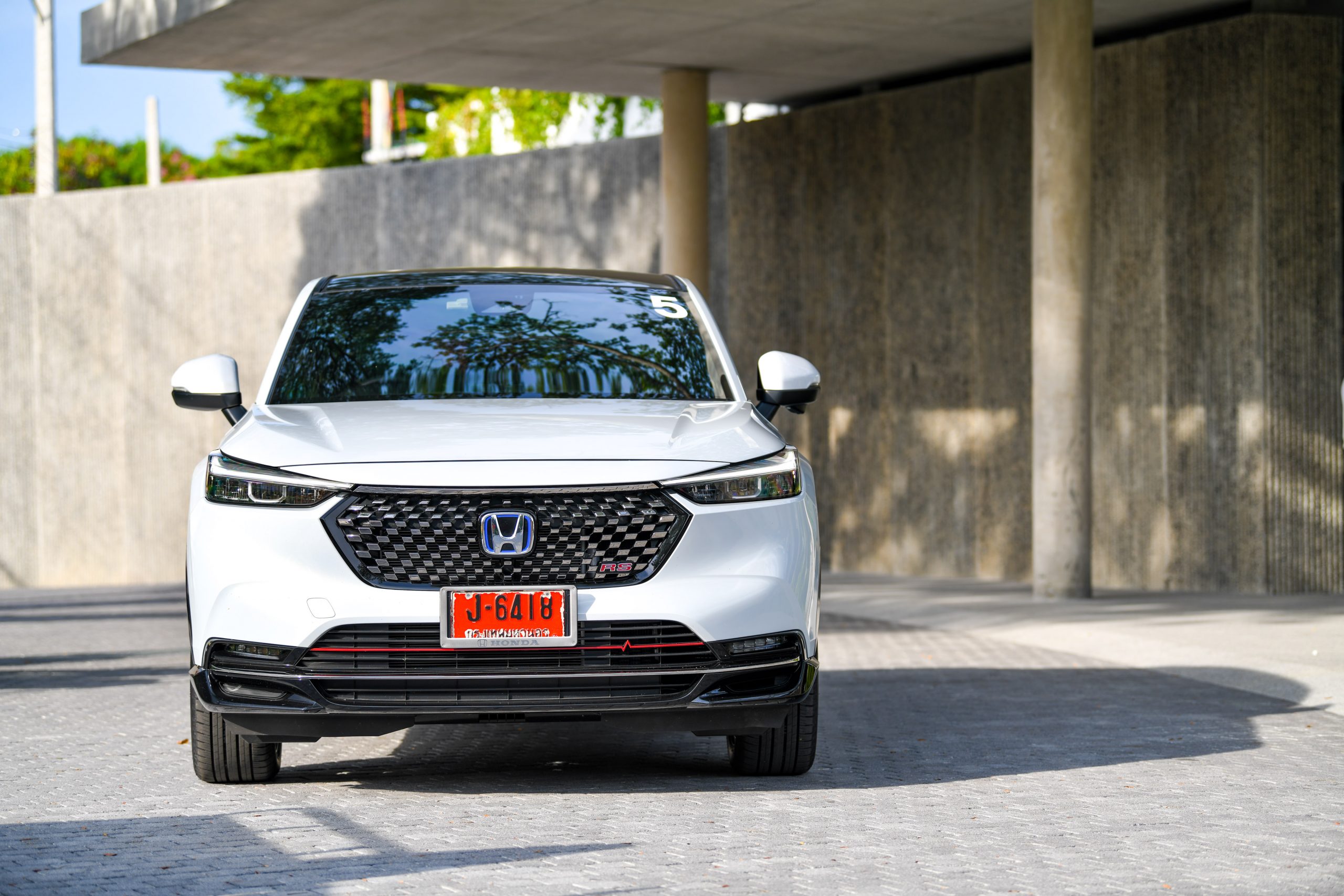 รุ่นที่ใช้ขับขี่กันวันนี้คือรุ่น RS เป็นรุ่นท็อป ซึ่งทางฮอนด้ามีหลังคากระจกมา โดยใช้ระบบ Low-E Glass Roof สามารถกรองแสง UV 90% โดยบอกมาว่ากั้นความร้อนแต่เมื่อใช้งานจริงมีความร้อนเข้ามาอยู่บ้าง จากที่ได้สัมผัสความรู้สึกเหมือนคุณขับรถยนต์ที่กระจกติดฟิล์มประมาณ 80 % เมื่อเอามือจับดูมันจะให้คาวมรู้สึกอุ่น ๆ อยู่บ้าง ส่วนการแพร่กระจายของความร้อนก็เหมือนก็เหมือนอยู่ในรถที่กระจกติดฟิล์ม ซึ่งเราได้สอบถามวิศวกรผู้ออกแบบชาวญี่ปุ่น บอกกับเราว่าความตั้งใจที่แท้จริงของเค้าก็คือการออกแบบที่มันสามารถช่วยให้ทั้งผู้โดยสารและผู้ขับขี่ได้สัมผัสถึงประสบการ์ณมุมมองใหม่ๆ บ้าง ไม่ใช่รถแบบเดิม ๆ ซึ่งหลังคากระจกแบบที่เปิดได้เหมือนรถยุโรปทั่วไปมันจะทำให้เสียพื้นที่ในส่วนของกระจก มันจะบดบังการมองเห็นของผู้โดยสารตอนท้ายไปและตั้งใจทำให้มีพื้นที่การมองเห็นได้มากที่สุดเท่าที่จะทำได้ จึงมีเรื่องราวของคลิปรีวิวในประเทศไทยสื่อออกมาว่าปิดยากแต่ถ้าคนที่ซื้อไปไว้ใช้งานจริงก็จะสามารถติดตั้งและถอดเก็บได้ชำนาญขึ้นเอง นักออกแบบเค้ายังกล่าวอีกว่าตั้งใจทำเป็นแผ่นปิดแบบนั้นเพราะหากใส่ตัวม้วนเก็บแบบด้านหน้ามันก็จะต้องลดขนาดของวิวการมองเห็นบรรยากาศท้องฟ้าออกไปอีก และต้องการให้ส่วนกระจกด้านหลังผู้โดยสารเปิดไว้ตลอดแต่ถ้าไม่ต้องการเป็นครั้งคราวก็สามารถปิดได้ นี่เป็นความตั้งใจที่อยากจะสื่อสารกับผู้ใช้รถยนต์ฮอนด้าจริงๆ จากปากชาวญี่ปุ่นผู้ออกแบบ HR-V e:HEV