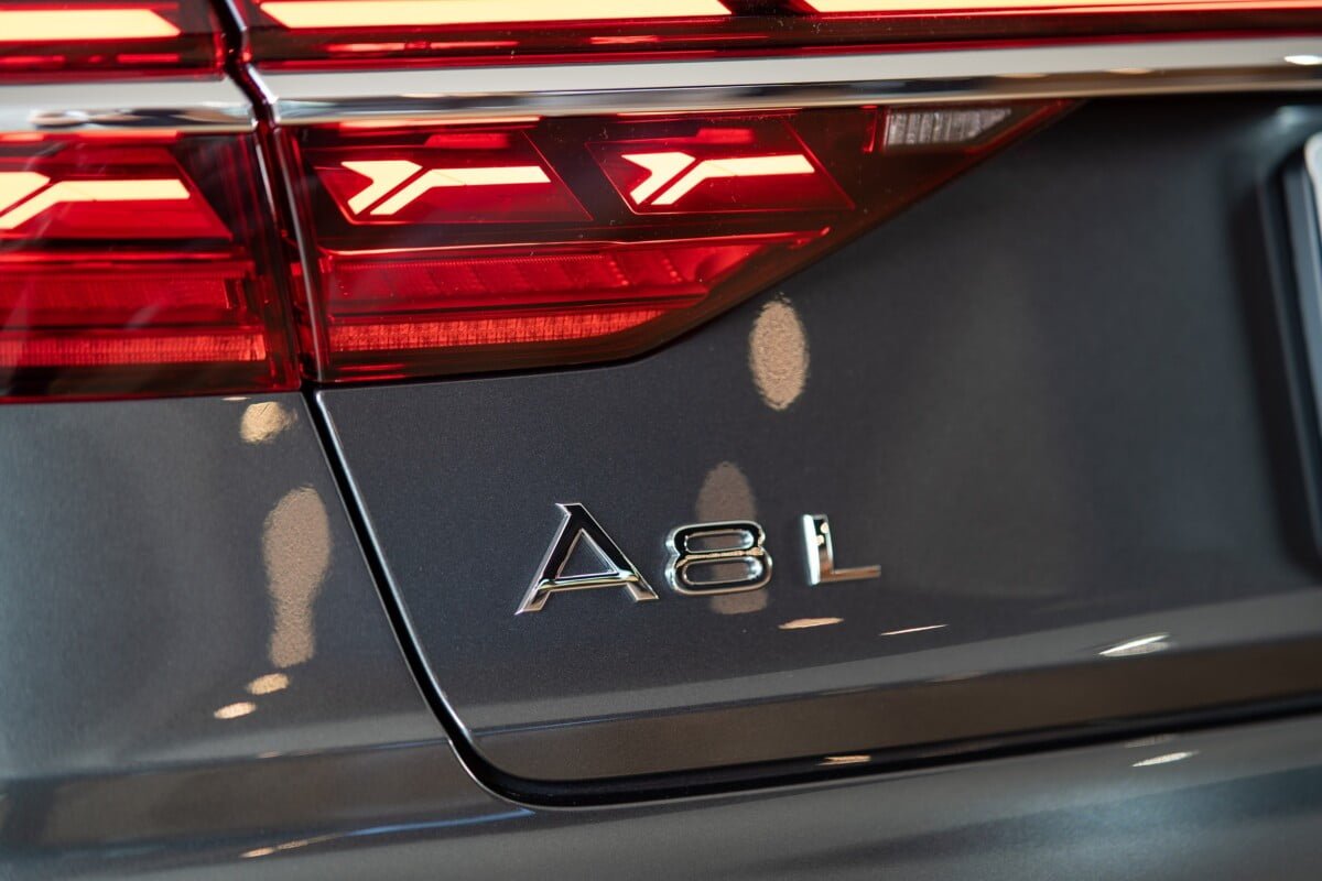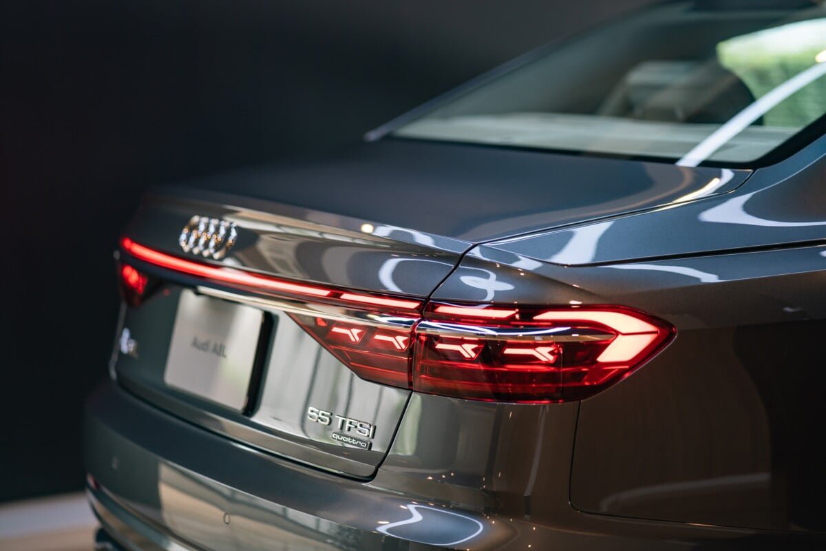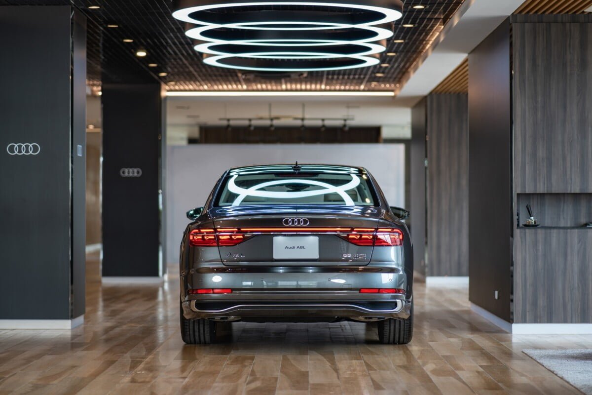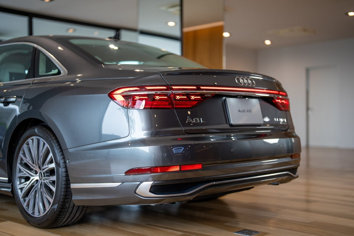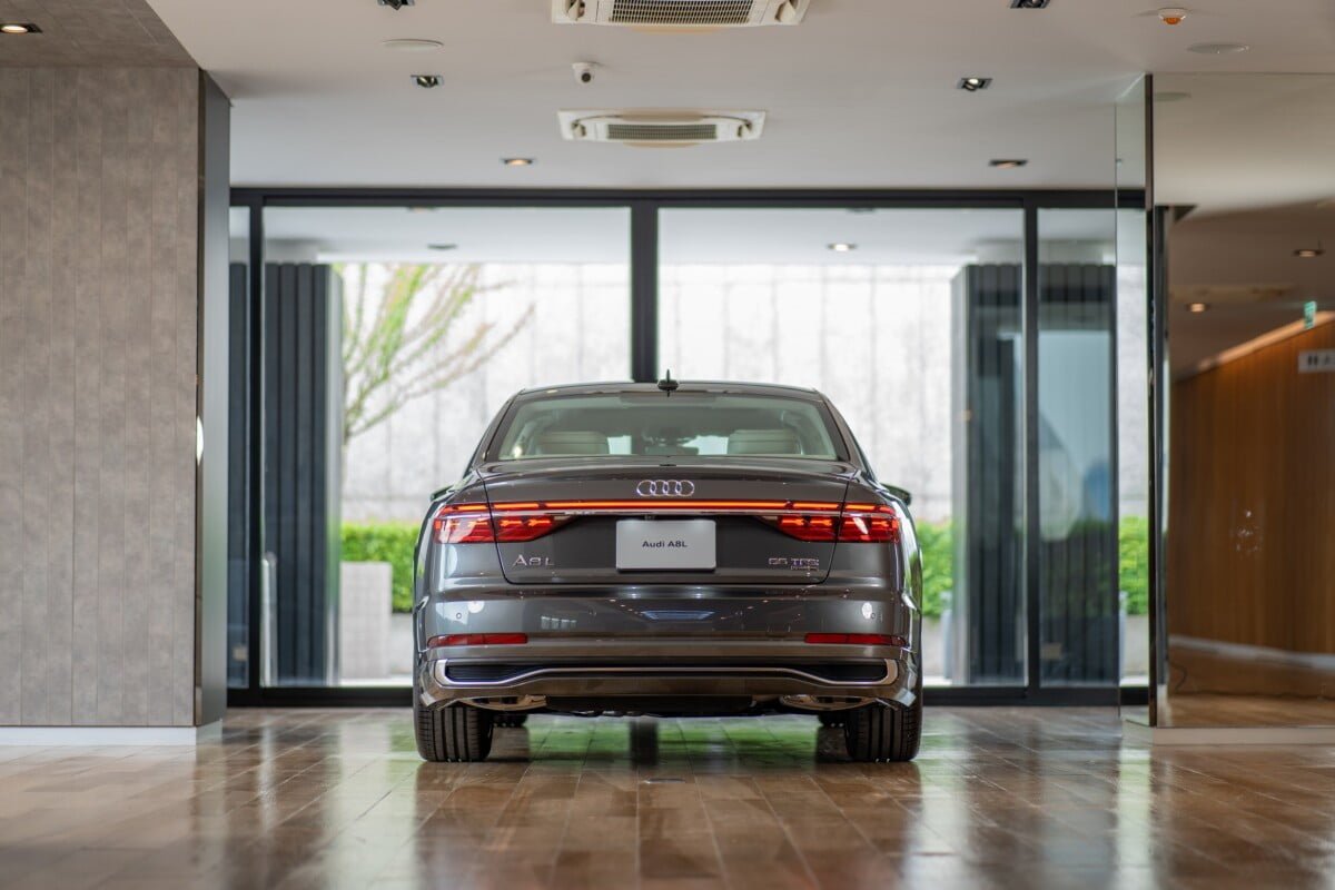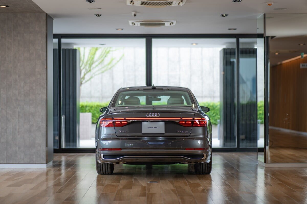 ด้านท้ายของตัวรถมีเส้นสายที่ชัดเจนด้วยการตกแต่งด้วย Chromium คาดยาวตั้งแต่ฝั่งซ้ายจรดฝั่งขวาของตัวรถ มีความล้ำสมัยมากขึ้นด้วยไฟท้ายแบบ OLED พร้อมเอฟเฟกต์ไฟด้านหลัง A8 L signature ที่สามารถปรับเปลี่ยนรูปแบบได้ตามโหมดการขับขี่ เป็นการผสานความหรูหราเข้ากับความสปอร์ตอย่างลงตัวด้วย S line exterior package ที่สามารถเพิ่มใน The New Audi A8 L ได้เป็นครั้งแรก โดยออกแบบให้มีความสปอร์ตมากขึ้น ด้วยช่องดักลม และ diffuser ดีไซน์ใหม่ที่มีความสปอร์ตมากขึ้นเช่นเดียวกับ รุ่น performance อย่าง Audi S8