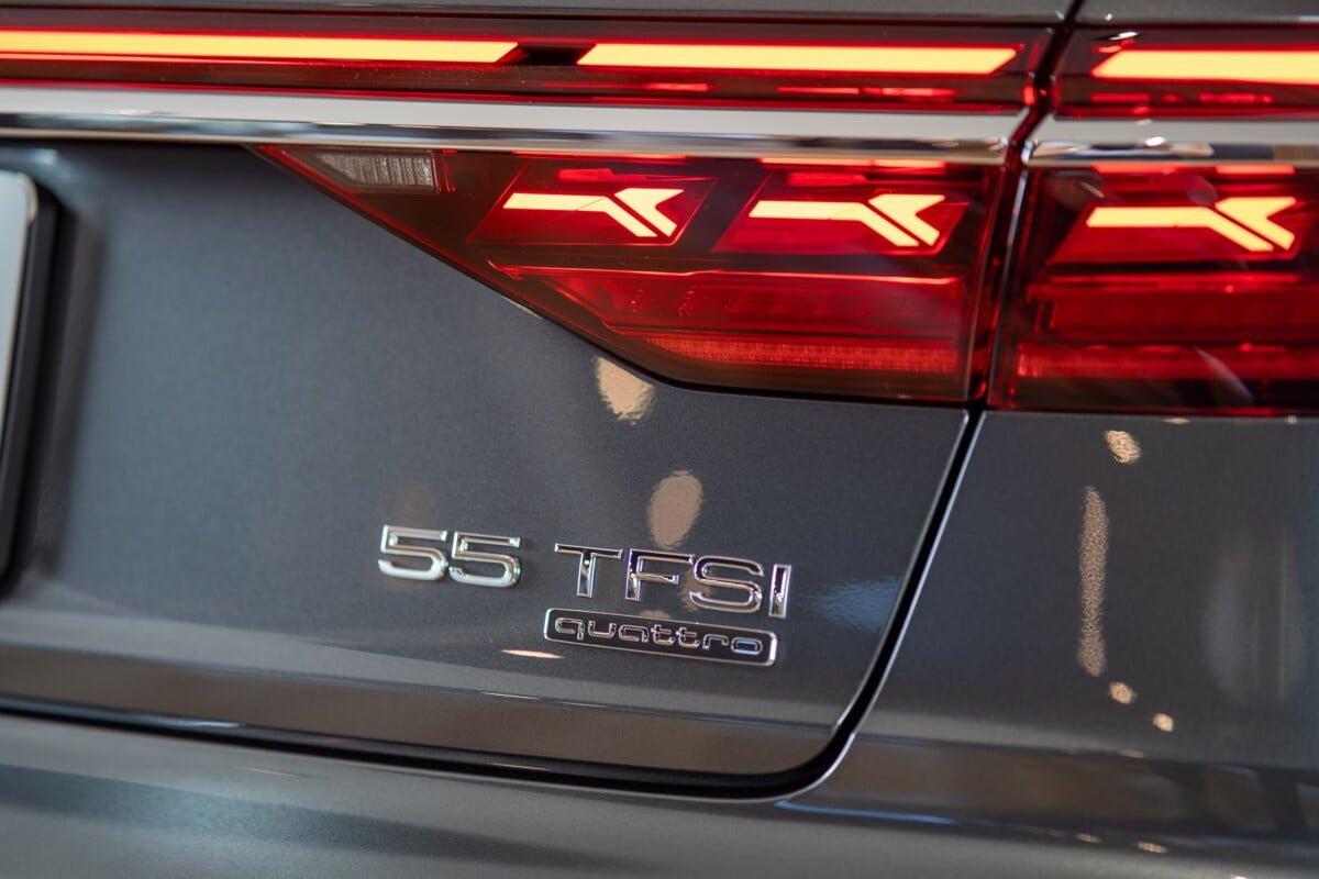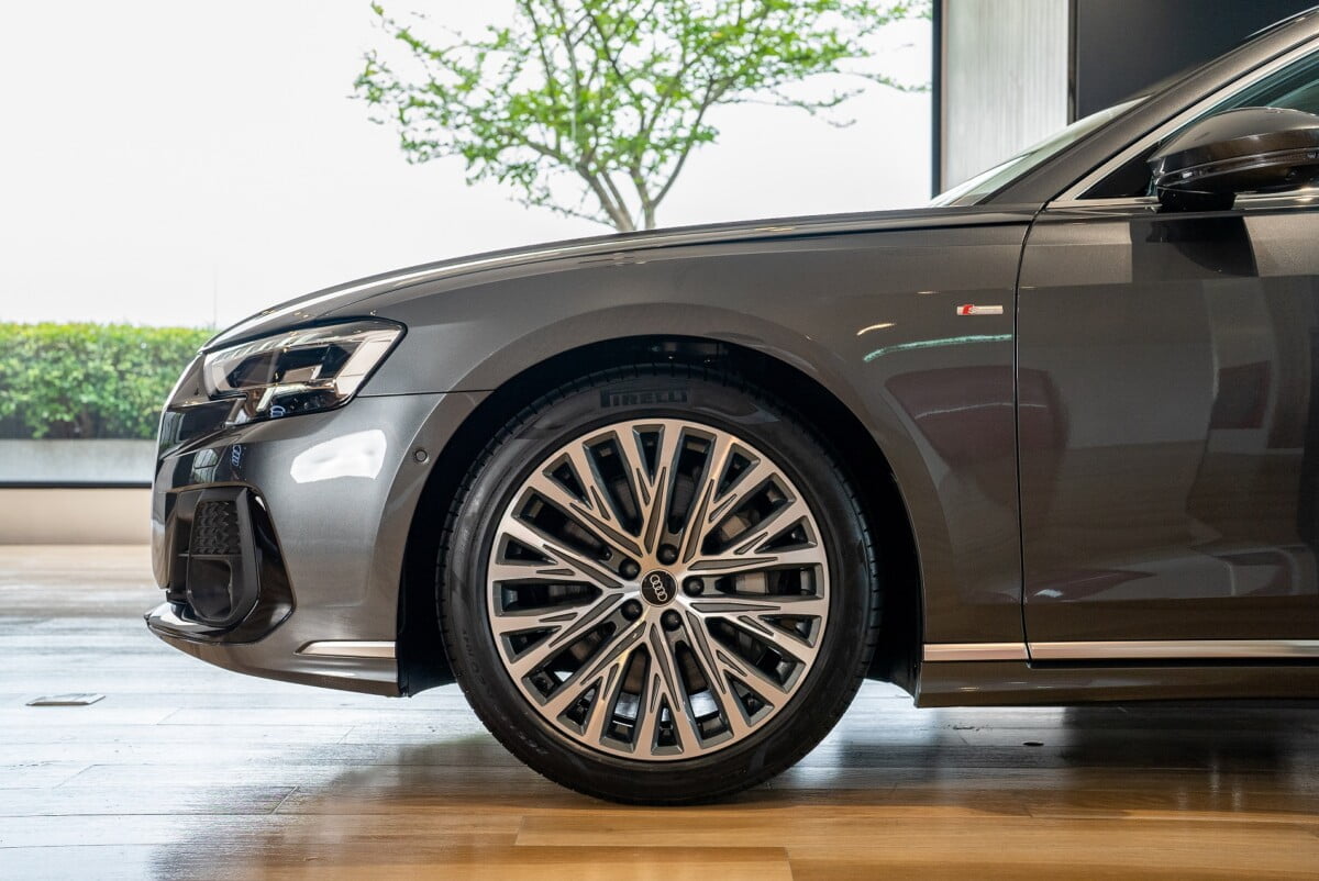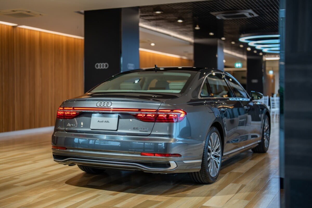 The New Audi A8 L 55 TFSI quattro Premium ราคา 6,999,000 บาท เป็นรุ่นเริ่มต้นแต่เน้นถึงความเรียบหรูด้วยกระจังหน้า ขอบคิ้วต่างๆ เป็นสี Chromium พร้อมอุปกรณ์มาตรฐานที่มีมาให้ครบถ้วน ไม่ว่าจะเป็น ล้อขนาด 20 นิ้ว แบบ 10 spoke, หลังคาตกแต่งด้วย Dinamica microfiber, หลังคา Panoramic, ไฟหน้า LED พร้อมระบบ high beam assist, ไฟท้ายแบบ OLED พร้อมฟังก์ชัน Light staging แบบ A8 L signature, ระบบช่วยผ่อนแรงเมื่อปิดประตู, ภายในตกแต่งด้วย Gray Brown Natural Fine Grin Ash, เบาะหนังแบบ Valetta พร้อมระบบอุ่น, ระบบแอร์แยก 4 โซน, จอ Virtual cockpit 12.3 นิ้ว, จอ MMI Navigation plus 10.1 นิ้ว, จอ Multi-function ขนาด 8.6 นิ้ว, จอรีโมทแบบมัลติฟังก์ชัน สำหรับผู้โดยสารด้านหลัง พร้อมจอ OLED แบบสัมผัสขนาด 5.7 นิ้ว และ Head-up display
