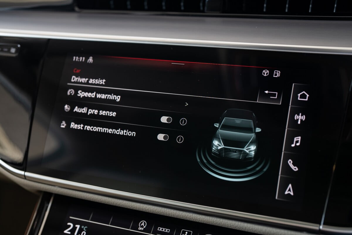 MMI touch response สามารถควบคุมได้ผ่านจอกลางขนาด 10.1 นิ้ว และขนาด 8.6 นิ้ว และยังสามารถเพลิดเพลินกับเครื่องเสียง Bang&Olufsen Premium Sound System with 3D sound 17 ลำโพง 16-channel amplifier 730 watts ที่มีมาให้เป็นอุปกรณ์มาตรฐานในรุ่น Prestige S line โดยเครื่องเสียงให้เนื้อเสียงที่สมจริง เสมือนอยู่ใน concert hall