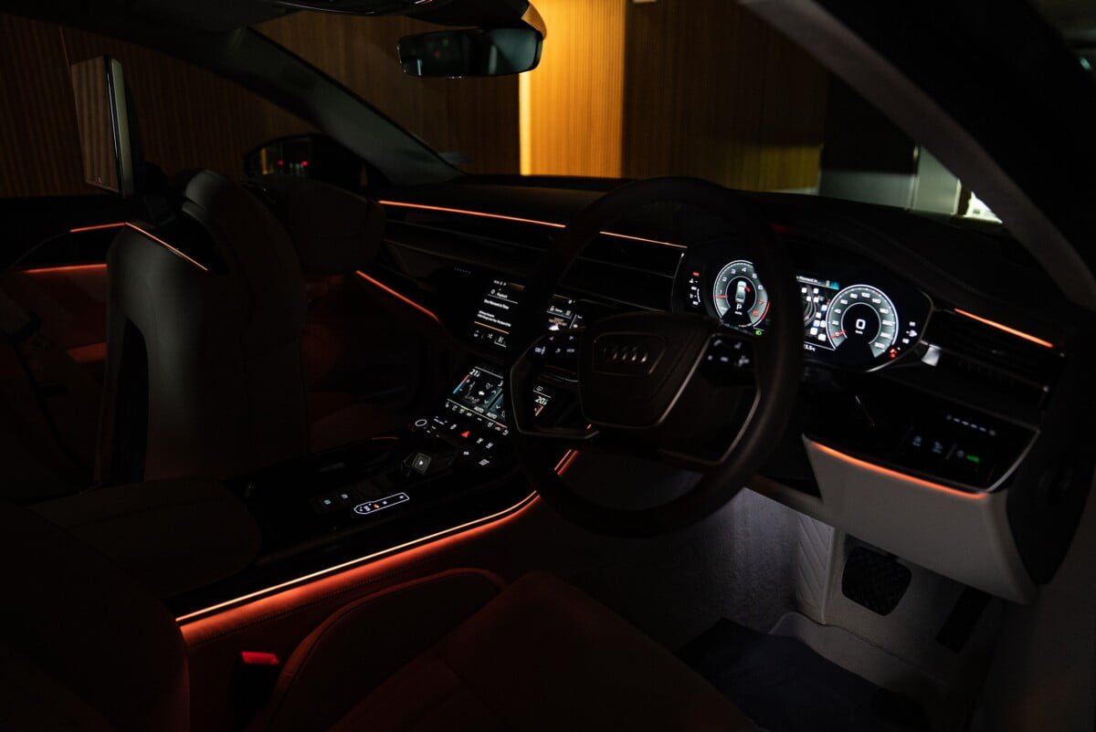 ส่องสว่างและคมชัดมากยิ่งขึ้น ด้วยไฟหน้าแบบ HD matrix LED และไฟเลี้ยวแบบ dynamic ที่เป็นจุดเด่นของการออกแบบของ Audi การดีไซน์ของไฟแบบใหม่นี้ สวยสะดุดตาไม่ว่าจะพบเห็นในช่วงกลางวันหรือกลางคืน ซึ่งไฟแบบ HD matrix LED ให้ความคมชัดมากขึ้น และสามารถส่องสว่างได้อย่างเที่ยงตรงมากขึ้นกว่าไฟแบบ matrix LED แบบธรรมดา อีกทั้ง HD matrix LED สามารถลดการแยงตาจากการส่องสว่างของไฟจากรถที่วิ่งสวนมา ด้วยการตรวจจับของกล้องบริเวณหน้ารถ โดยรถจะดับไฟเฉพาะจุดที่ส่องไปยังรถคันอื่น แต่ยังคงส่องสว่างไปยังจุดที่ไม่มีรถ ซึ่งจะช่วยเพิ่มความสะดวกสบาย และความปลอดภัยของผู้ขับขี่เมื่อต้องขับรถในเวลากลางคืน อีกหนึ่งอุปกรณ์ใหม่ของ The New Audi A8 L คือ digital OLED rear light พร้อมเอฟเฟกต์ไฟด้านหลัง A8 L signature เป็นอุปกรณ์มาตรฐาน ซึ่งรูปแบบไฟท้ายสามารถปรับได้ 2 แบบ หากปรับโหมดการขับขี่เป็นแบบ Dynamic และนอกจากนี้เมื่อมีวัตถุอื่นเข้ามาใกล้ในระยะ 2 เมตร ขณะที่รถจอดอยู่ ไฟ OLED ทั้งแผงจะติดขึ้นมาโดยอัตโนมัติอย่างชัดเจน เพื่อเตือนผู้ที่เข้ามาใกล้ไฟเลี้ยวที่เป็นแบบ Dynamic ด้วย รวมไปถึงฟังก์ชัน Coming home หรือ leaving home ขณะดับเครื่อง และเปิด/ปิดล็อครถ