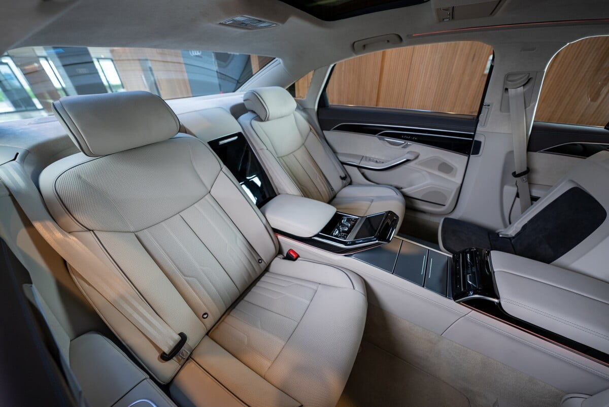 ภายในของ The New Audi A8 L ถูกออกแบบมาให้กว้างขวาง ที่นั่งผู้โดยสารด้านหลังสำหรับรุ่น Prestige S line จะเป็นเบาะแยกอิสระประดุจดั่ง First class lounge ที่ยังคงความเรียบหรูไว้ และมาพร้อมฟังก์ชันที่หลากหลาย โดยเฉพาะอย่างยิ่งฟังก์ชันที่ช่วยการผ่อนคลาย