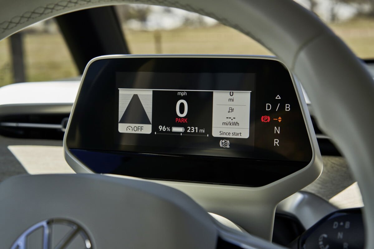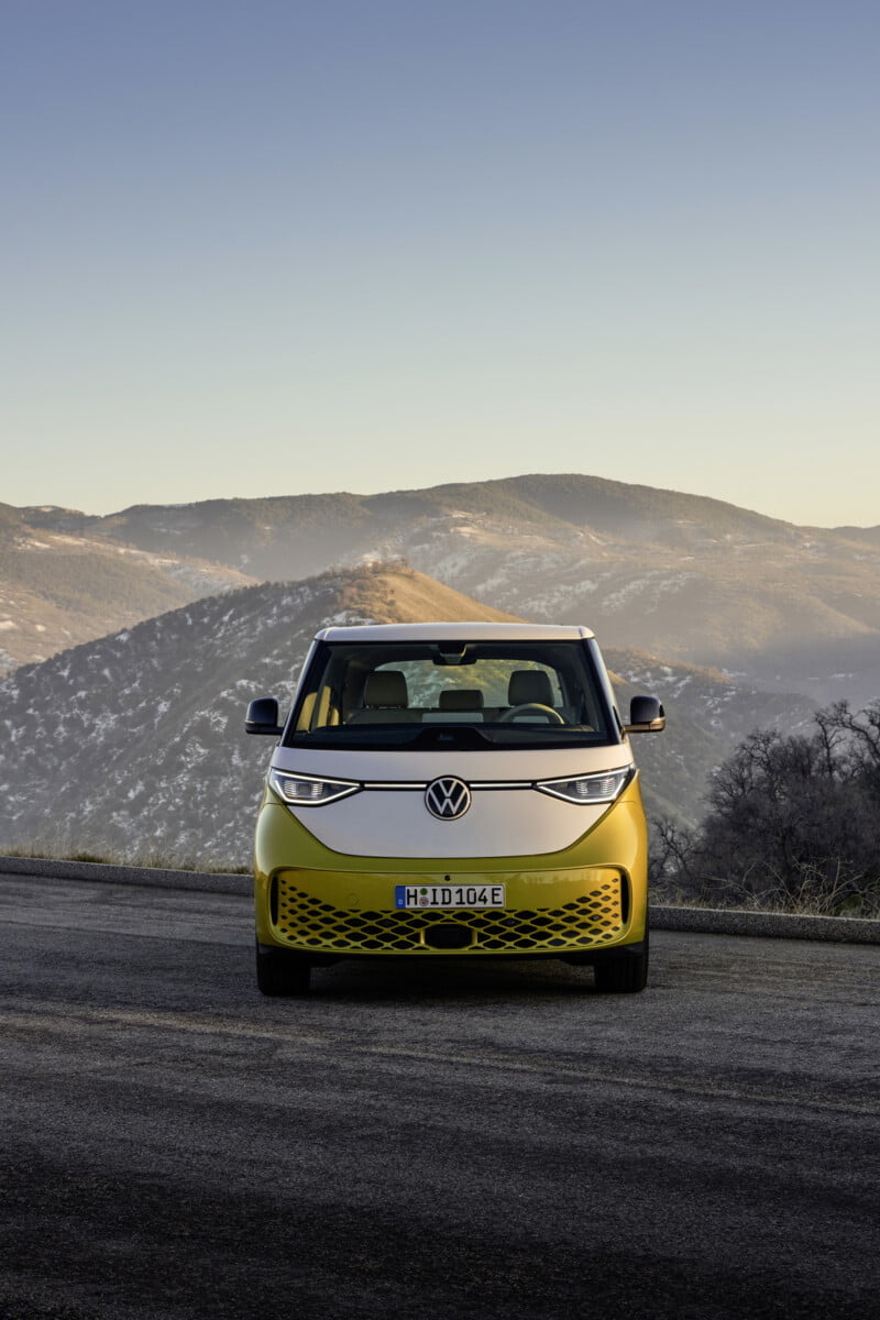ด้านหน้ามีไฟหน้า LED ที่สว่างมากในรุ่นท็อปภายใต้ชื่อ ‘IQ.Light – LED matrix headlights’ ระหว่างไฟหน้ายังเป็นแถบ LED อีกด้วย รวมไปถึงมีโลโก้ VW ที่ใหญ่กว่าในรุ่นอื่นๆ ในปัจจุบันทั้งหมด นอกจากนี้ด้านหลัง ID. Buzz ยังแตกต่างจาก T6.1 ด้วยไฟท้ายแบบ LED ในแนวนอน แทนที่จะเป็นแนวตั้ง อีกทั้งเป็นครั้งแรกในรถยนต์ Volkswagen Commercial Vehicles ด้วยแถบไฟแบบ end-to-end