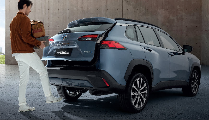 Corolla Cross เน้นประโยชน์ใช้สอยเพิ่มขึ้นเมื่อเทียบกับ C-HR ห้องเก็บสัมภาระมีความจุมากถึง 487 ลิตร (เมื่อยังไม่พับเบาะแถวสอง) ประตูด้านหลังมีขนาดใหญ่ช่วยให้ผู้โดยสารสามารถขึ้นและลงจากรถได้อย่างสะดวกสบายมากขึ้น และยังมีการออกแบบที่ว่างเหนือศีรษะให้สูงพอดี มีความโปร่ง สบาย ไม่อึดอัด มีช่องต่อ USB สำหรับผู้โดยสารด้านหลัง 2 ตำแหน่ง