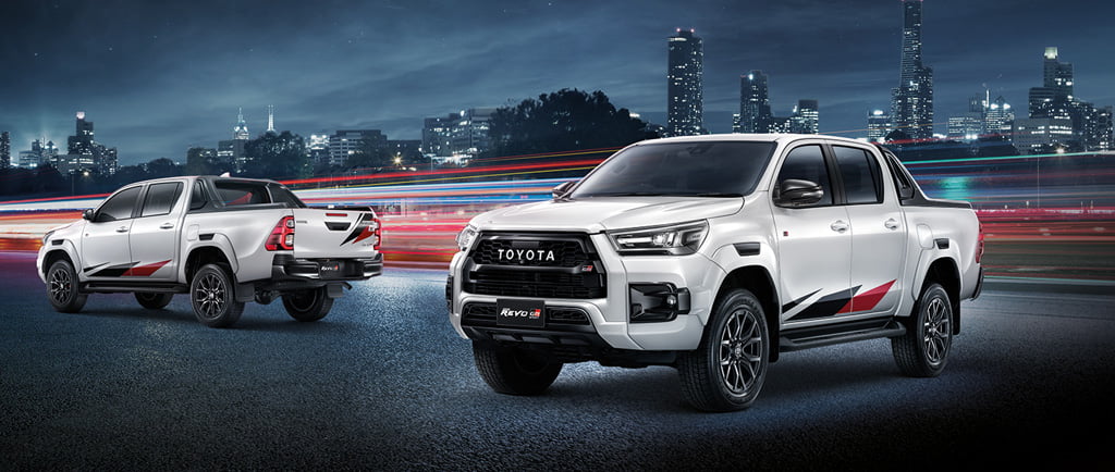 มาให้สัมผัสแล้วในปี 2021 กับรถกระบะสายพันธุ์สปอร์ตที่ให้อีกขั้นแห่งพลังแกร่งเหนือนิยาม Toyota Hilux Revo GR sport 2021 มาให้ยลโฉมกันทั้งหมด 2 รุ่น ได้แก่ D-Cab 4×2 2.8 GR Sport AT และรุ่น D-Cab 4×4 2.8 GR Sport AT โดยถูกสร้างด้วยฝีมือคนไทย ซึ่งแน่นอนว่าครั้งนี้มาพร้อมกับความสปอร์ตเต็มขั้น พร้อมรับทุกสถานการณ์