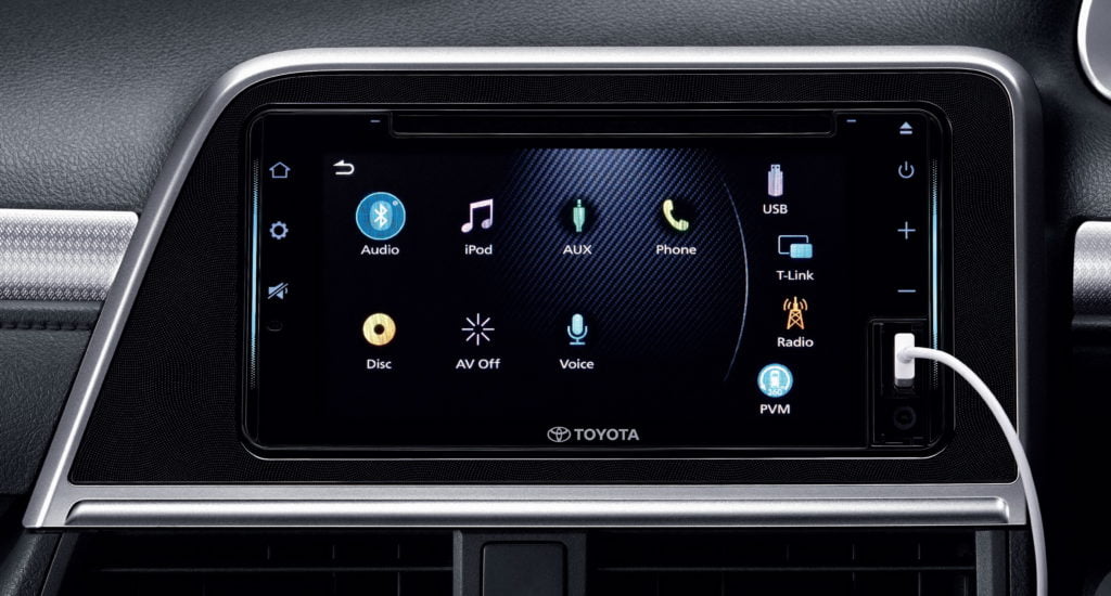ภายในเป็นเบาะหนังและวัสดุกึ่งสังเคราะห์สีดำ เดินตะเข็บสีส้ม (ในรุ่น 1.5V) แผงข้างประตูดีไซน์ใหม่เรียบหรูดูดีขึ้น มาพร้อมจอสัมผัสขนาด 6.8 นิ้วใหม่ มีฟังก์ชัน T-Link เชื่อมต่อแอปพลิเคชันนำทาง และฟังเพลงออนไลน์ชั้นนำ เพิ่มระบบสตาร์ท (Push Start) และระบบเปิดประตูอัจฉริยะ (Smart Entry) สตาร์ทเครื่องยนต์เพียงปลายนิ้วสัมผัส ควบคุมการล็อก-ปลดล็อกประตูอย่างง่ายดาย