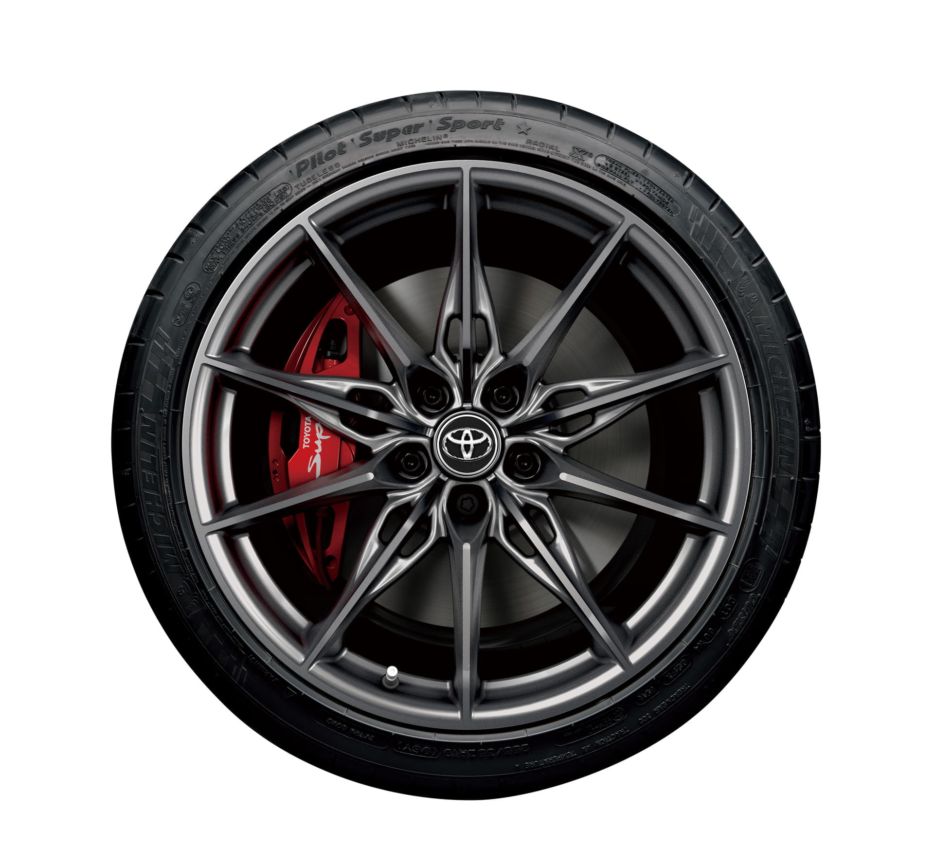 - ใช้ล้ออลูมิเนียมฟอร์จขนาด 19 นิ้วที่ออกแบบใหม่ ในขณะที่ยังคงความสม่ำเสมอของ GR Yaris และ GR86 โดยการตรวจสอบรูปร่างซี่ล้อและรูปร่างหน้าตัด ทำให้ได้น้ำหนักที่ลดลงและความแข็งแกร่งสูง ตลอดจนการปรับปรุงประสิทธิภาพและความสวยงามในการใช้งาน