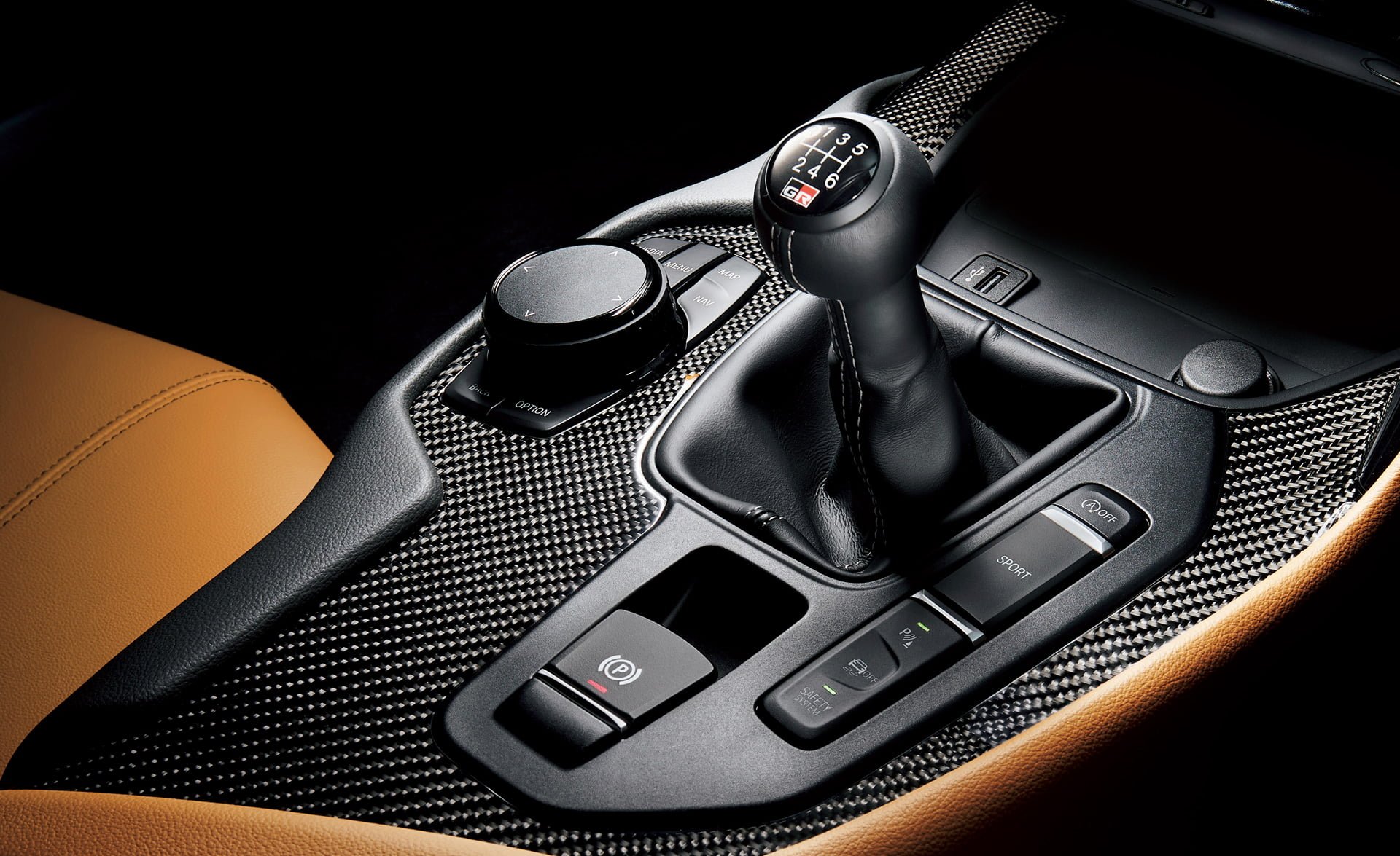 - ปุ่มเปลี่ยนเกียร์ใช้รูปทรงทรงกลมที่ง่ายต่อการจับและใช้งานจากทุกทิศทาง โลโก้ GR ถูกวางไว้บนลูกบิดเพื่อสร้างภาพลักษณ์ที่ดูสปอร์ต