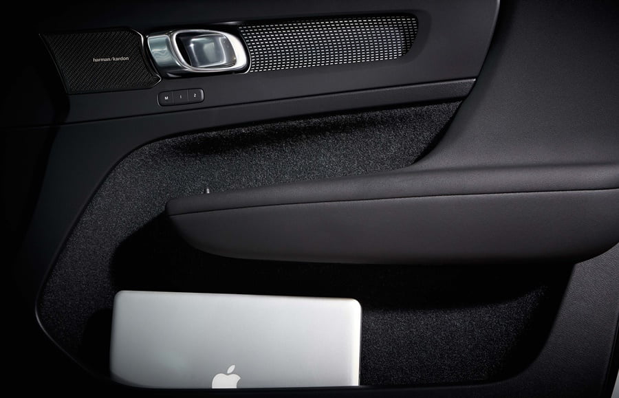 XC40 มีช่องเก็บสัมภาระที่ออกแบบมาเพื่อรองรับสำหรับสิ่งของต่างๆ โดยด้านล่างที่พักแขนติดตั้งช่องเก็บของขนาดใหญ่ซึ่งมีที่รองรับขยะและสามารถถอดออกได้ พื้นที่ใต้เบาะนั่งยังมีช่องเก็บของสำหรับสิ่งของชิ้นเล็กๆ อีกทั้งยังมีแท่นชาร์จสมาร์ทโฟนแบบไร้สาย ตะขอแขวนถุงช็อปปิ้งใบเล็กๆ และยังมีที่วางแก้วและที่ชาร์จไฟแบบ USB อีกหลายจุด พื้นที่ส่วนล่างภายในห้องโดยสารถูกจัดสรรเป็นช่องเก็บของทั้งหมด ซึ่งทำให้ XC40 ตอบโจทย์ชีวิตคนเมืองได้ดีที่สุดในรถยนต์ระดับเดียวกัน โดยสามารถเก็บได้ทั้งขวดเครื่องดื่มขนาดหญ่ เครื่องแล็บท็อป หรือแม้แต่กระเป๋าเดินทางใบเล็ก
