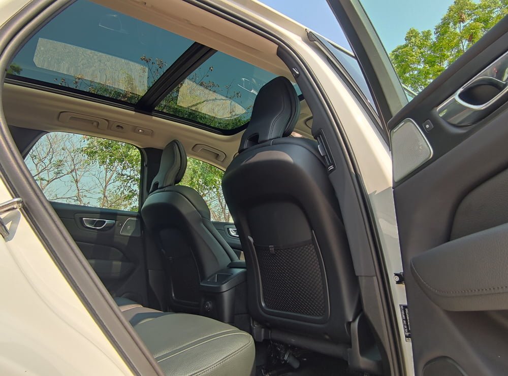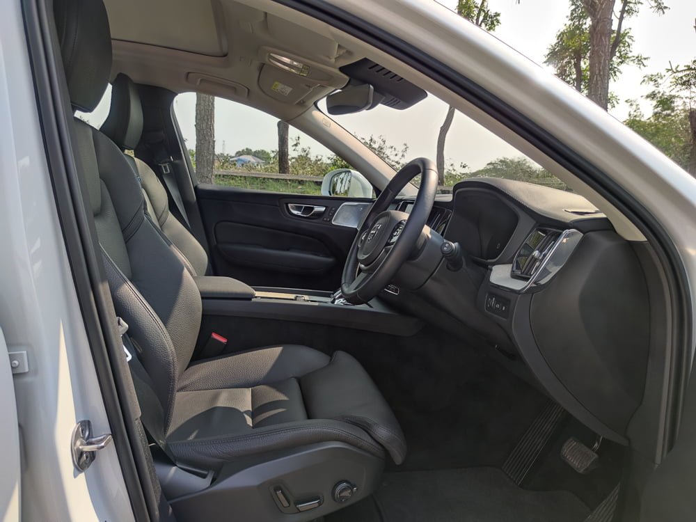 เบาะหนังเป็นแบบบัคเก็ต Seat ที่เวลานั่งแล้วมันดูโอบกระชับร่างกายเป็นอย่างดีและก็ยังคงความหรูไว้ ซึ่งทั้งดีการใช้งาน ดีไซน์และวัสดุ ในส่วนของเบาะจะเห็นได้ว่าเป็นหนัง Nappa ที่หุ้มด้วย Nappa แบบเจาะรู อีกทั้งตัดเย็บด้วยด้ายสีขาวและขลิปริมสีขาว อีกทั้งมีการปั้มตัวหนังสือ R Design ลงที่เบาะด้วย ซึ่งเบาะคู่หน้าสามารถปรับได้แบบไฟฟ้า พร้อมบันทึกตำแหน่งได้ทั้งคนขับและคนนั่ง แถมยังปรับระดับที่รองหลังและปีกข้างที่โอกระชับได้ทั้งคู่แบบไฟฟ้าอีกด้วย