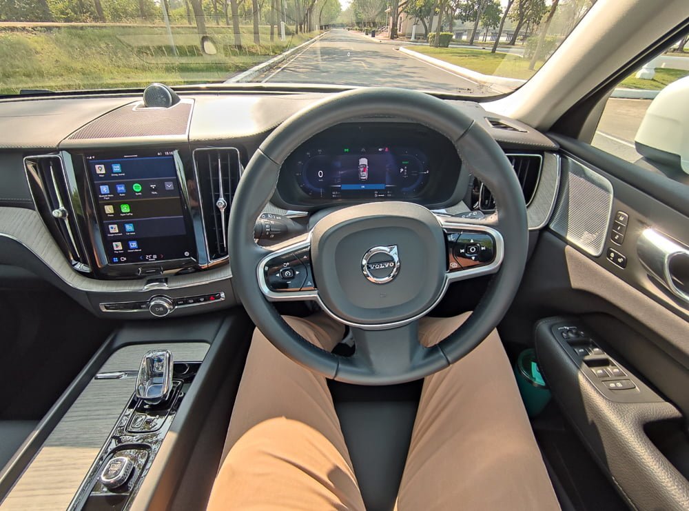 ถึงแม้ Volvo XC60 T8 Twin Engine AWD R-Design จะเป็นรถอนกประสงค์ขนาดกลาง มีน้ำหนักของตัวรถก็หนักเอาการ แต่การออกตัวนั้น ไม่ได้มีปัญหาเลย แค่เราเริ่มแตะคันเร่งไปเบา ๆ รถก็ออกตัวไปได้แบบไม่ต้องฝืนกำลังเครื่อง นั่นเป็นเพราะการทำงานของมอเตอร์ไฟฟ้า ที่เข้ามาเริ่มหมุนล้อให้ออกตัวได้ก่อน แล้วเครื่องยนต์ก็ตามมาเพิ่มกำลังหมุนล้อให้มากขึ้นแบบไม่ได้สร้างความกระชากอะไรให้เห็น ความเร็วขึ้นได้อย่างต่อเนื่องแบบนุ่มนวล เผลอแค่แปปเดียว รถก็วิ่งไปประทับความเร็วที่ 120 กิโลเมตร/ชั่วโมง จนคนขับเองไม่รู้ตัว