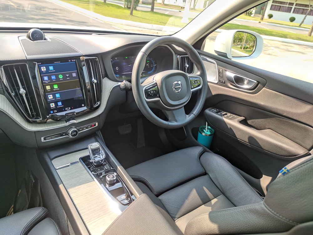 ภายในของ Volvo XC60 T8 Twin Engine AWD R-Design ตกแต่งภายในที่หรูหรา ล้ำสมัยเข้ากับการออกแบบสไตล์สแกนดิเนเวี่ยนที่เรียบง่ายสง่างาม และมีอุปกรณ์เยอะมากจริง การตกแต่งแดชบอร์เป็นสีดำดูสุขุมและเรียบหรูและมีการตกแต่งตามขอบต่างๆเป็นกรอบโครเมียมแบบขัดลายยิ่งทำให้ดูสวยงามมากขึ้น